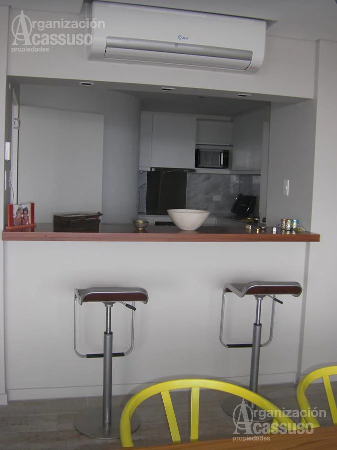 Excelente departamento living comedor super amplio con estufa a leña balcón con parrillero cocina toilette 2 dormitorios en suite Aire acondicionado en todos los ambientes garaje y baulera privada. Cocheras de cortesía. portería y lavadero.