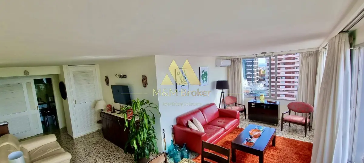 Cálido apartamento en piso alto con 2 dormitorios y 2 baños, en edificio céntrico, clásico y esquinero de la Península, en Punta del Este.