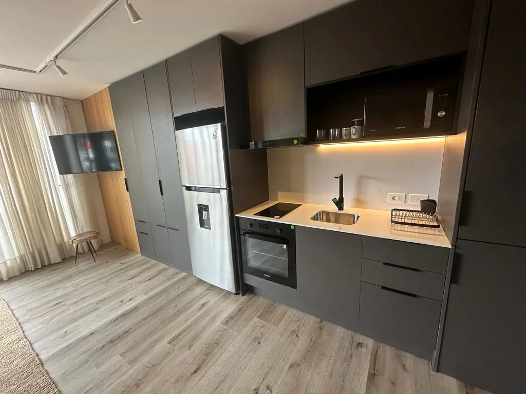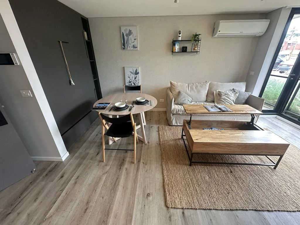 Las unidades se entregan ya equipadas con splits de aire acondicionado, horno empotrado, anafe, campana, muebles aéreos y bajo mesada-