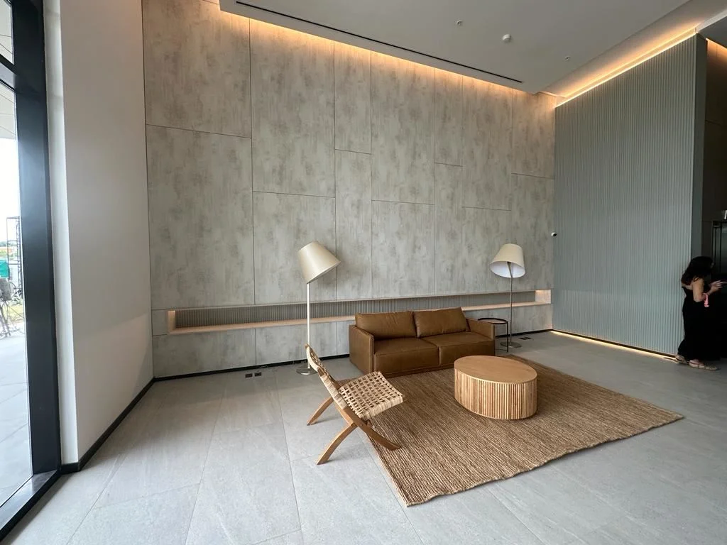 Hall de acceso en doble altura, dispone a partir del nivel 6 de 14 niveles de apartamentos con 10 unidades por piso
