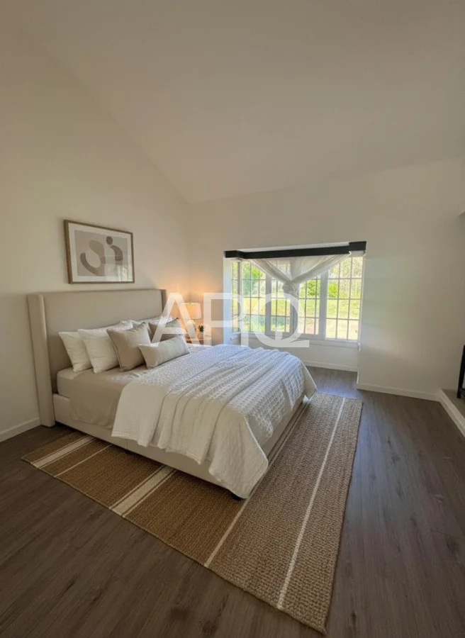 5 dormitorios, 2 en suite, y 4 baños en total, brindando amplitud y privacidad para familia e invitados.