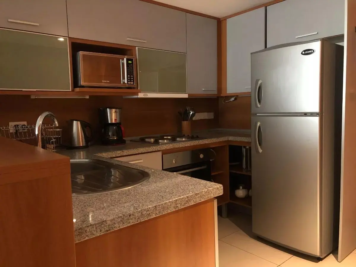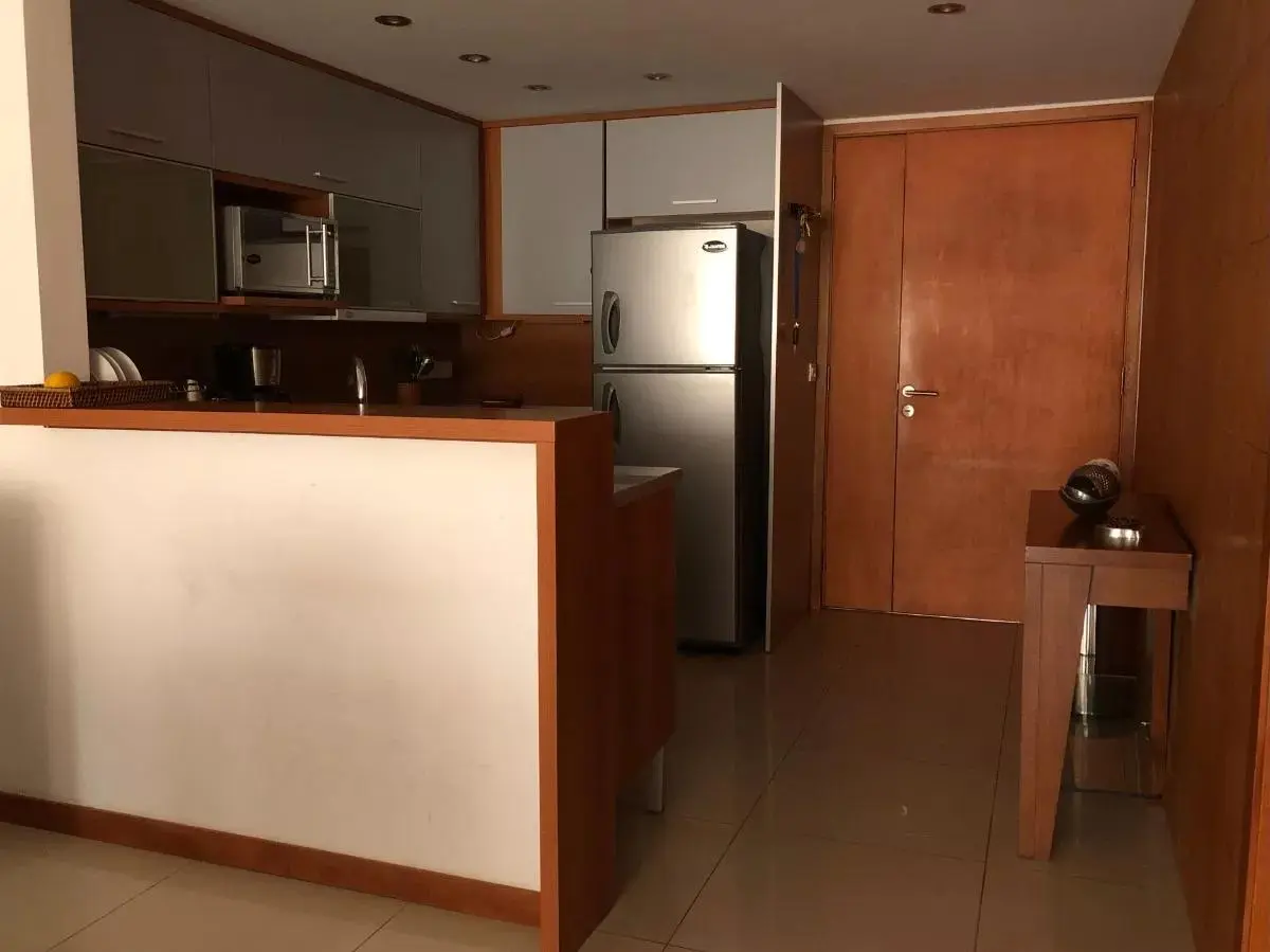 Cuenta con 2 dormitorios, ambos en suite, luminoso, amplio living comedor, baño social y cocina americana. Importante balcón que se accede por el living y dormitorios con vista al jardín.