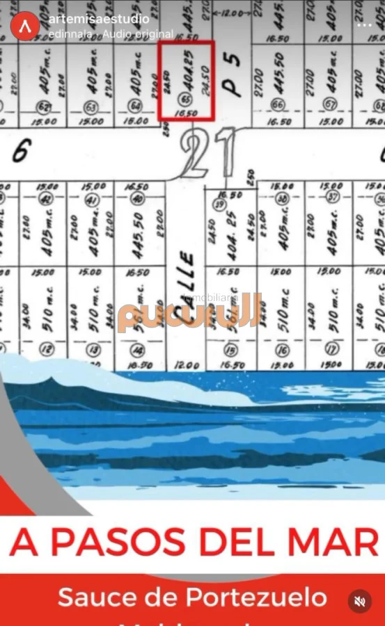 Terreno 404 m2 , en Sauce de Portezuelo - Punta Ballena Ubicado a 100 metros del Mar. Fondo : 25 mts Frente : 17 mts Terreno en esquina. Con vista totalmente despejada al mar. Sale calle de 100 m2 que conecta al mar por lo que queda vista totalmente despejada. Se escucha oferta contado. Se financia, entrega 28.000 y saldo en pequeñas cuotas mensuales. Consulte con nuestros asesores. Referencia Interna : Tera-2629
