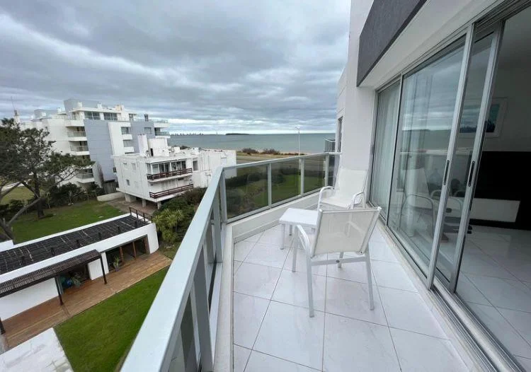Apartamento en venta en primera línea de la Playa Mansa, con vista lateral al mar. Amplio living comedor luminoso con salida a balcón; dos dormitorios, principal en suite; toilette de recepción; cocina integrada. Tiene parrillero de uso exclusivo en planta alta. Cochera techada. Con renta anual de, U$S 1300.