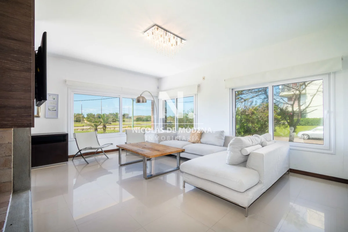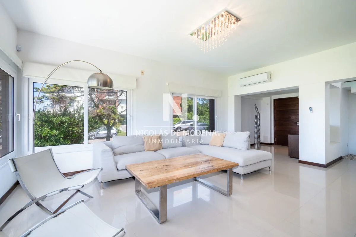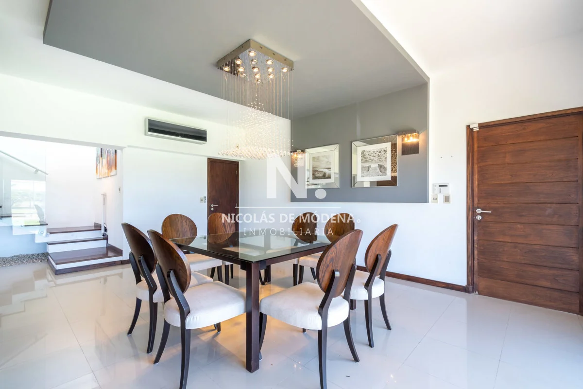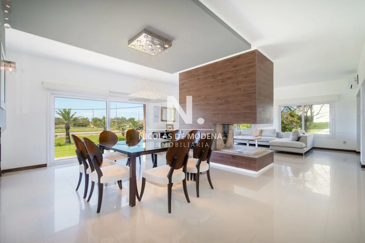 La casa cuenta con alojamiento para 8 personas. El diseño interior se caracteriza por espacios amplios y luminosos, incluyendo un living comedor integrado, perfecto para el entretenimiento y la convivencia. La cocina, completamente equipada, dispone de anafe, microondas, heladera con freezer, campana, horno y amplios placares, facilitando la preparación de comidas gourmet.