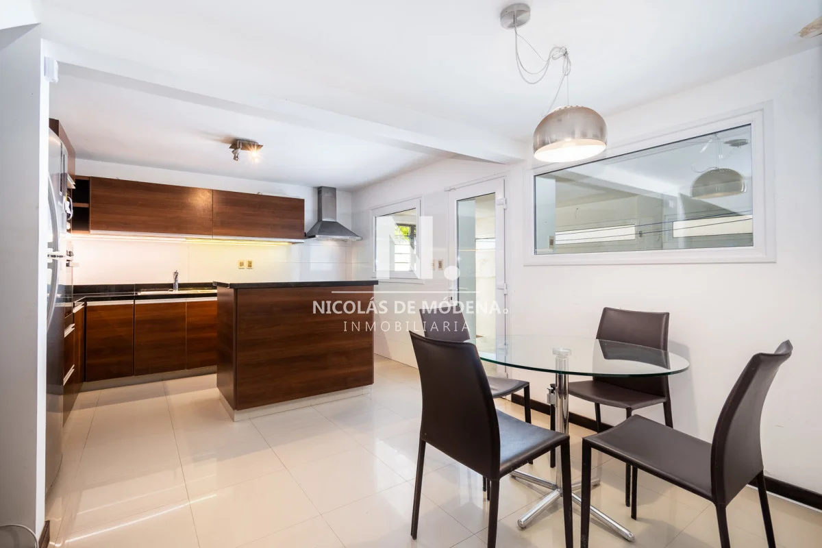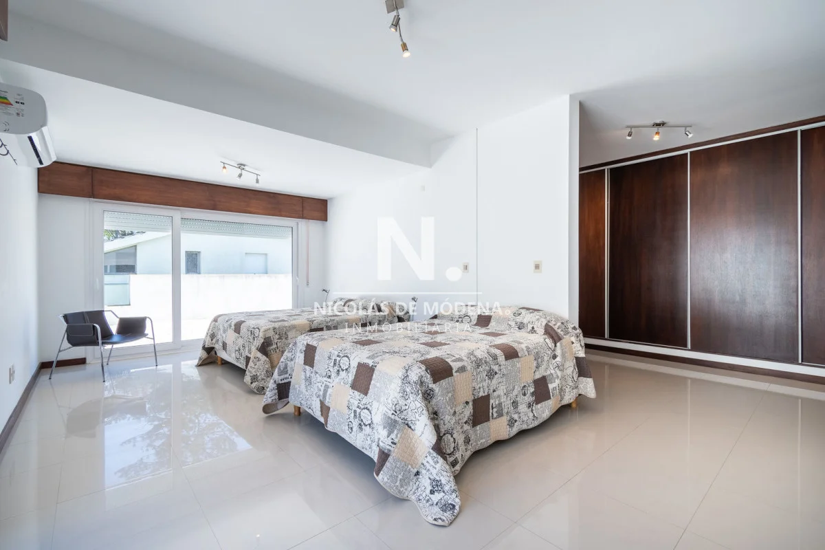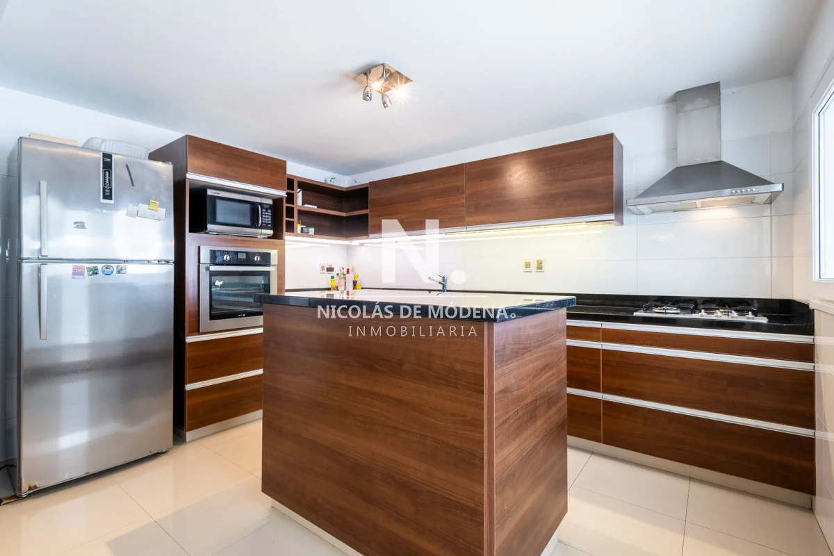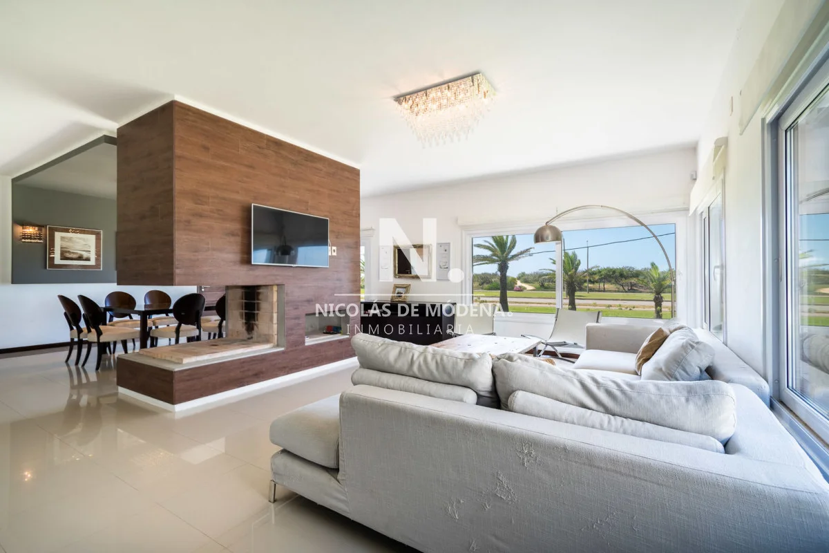 La casa cuenta con alojamiento para 8 personas. El diseño interior se caracteriza por espacios amplios y luminosos, incluyendo un living comedor integrado, perfecto para el entretenimiento y la convivencia. La cocina, completamente equipada, dispone de anafe, microondas, heladera con freezer, campana, horno y amplios placares, facilitando la preparación de comidas gourmet.