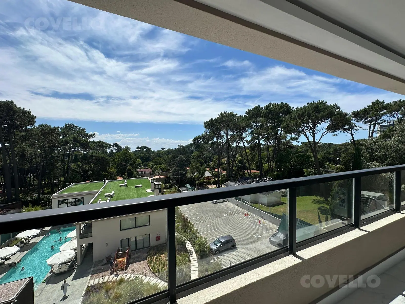 El edificio cuenta con una variada cantidad de amenities que van desde piscina interior y exterior hasta gimnasio.