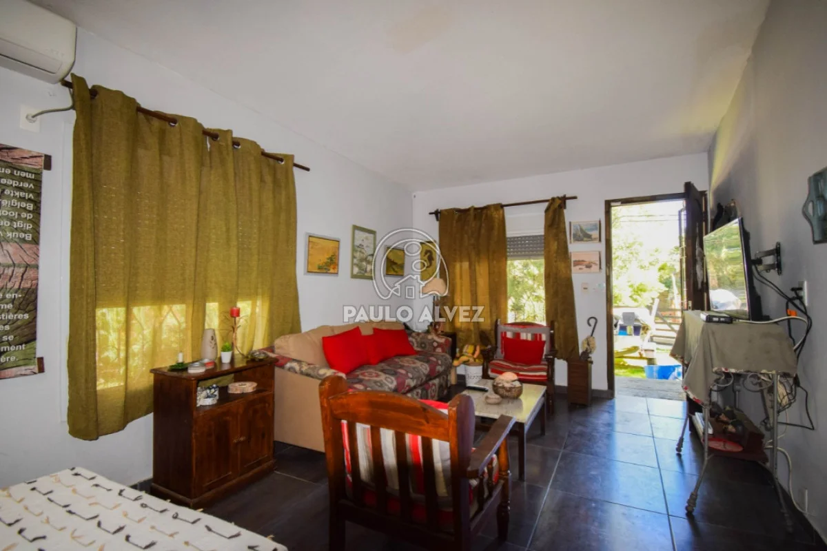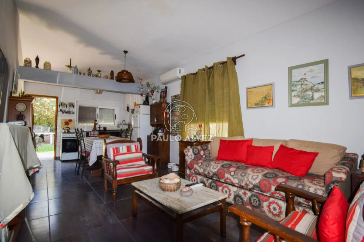 Propiedad de construcción tradicional en balneario Playa Hermosa, entorno natural y agradable. 93 m² construidos sobre un terreno esquina de 570m². Techo de losa, con tejas. Aberturas de aluminio, persianas de pvc y rejas. Distribuida en living con cocina comedor integrada, con aire acondicionado. Primer dormitorio de gran tamaño, con aire acondicionado, baño completo. Segundo dormitorio, con placard empotrado y aire acondicionado. Parrillero techado. Depósito. Hermoso predio enjardinado, completamente cercado. Por más información, comuníquese.