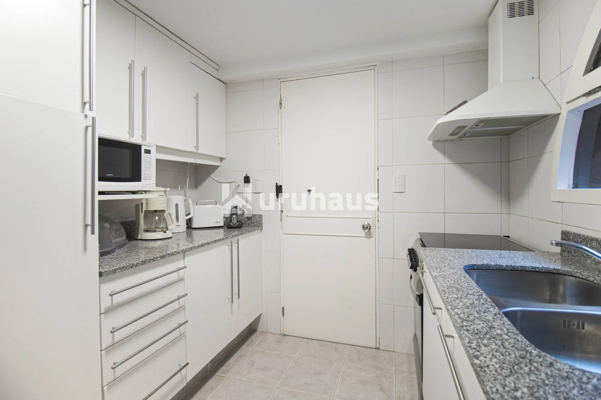 Tres dormitorios amplios, uno de ellos en suite; dos baños completos; cocina definida, espaciosa y totalmente equipada; gran living-comedor con salida a la terraza y una vista muy linda al mar que hace que este espacio sea exclusivo.
