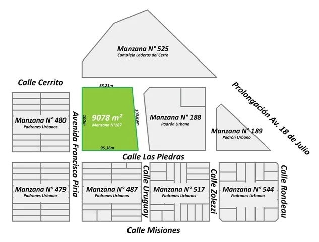 TERRENO CERRO DEL TORO MALDONADO TERRENO CERRO DEL TORO TE100846 "Gran Oportunidad Para Inversores". Con la ciudad y el mar a sus pies, espectacular terreno céntrico de 9.078 m², ideal para fraccionar con frente a 4 calles. Ubicado en las laderas del Cerro del Toro, desde donde se aprecian muy lindas vistas de toda la ciudad, de los distintos cerros y al mar en el horizonte. Cuenta con todos los servicios esenciales muy cerca (supermercados, farmacia, tiendas, ferreterias, barracas, servicios de omnibus de linea e interdepartamentales, etc) Excelente potencial para inversores. Coordine una visita