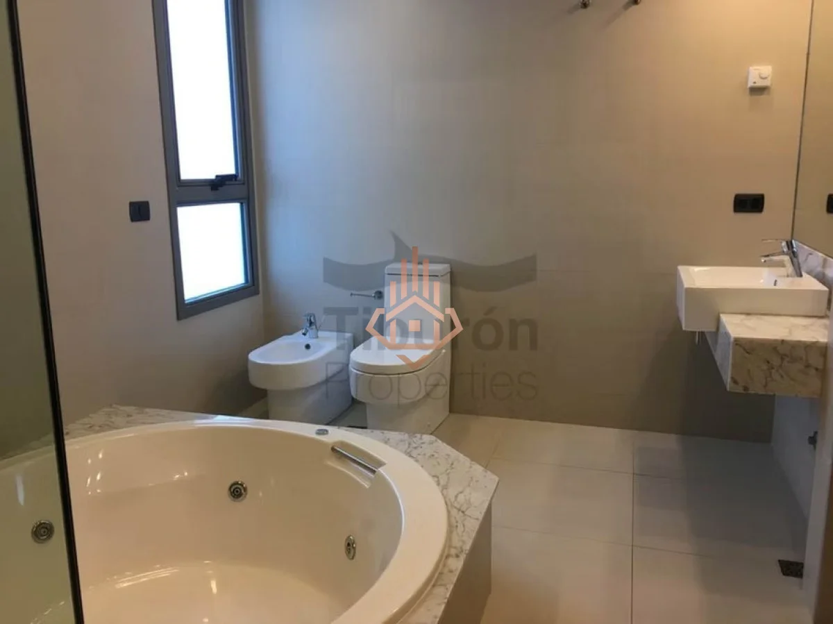 La unidad tiene una superficie de 388 m² y cuenta con 3 dormitorios y 5 baños.