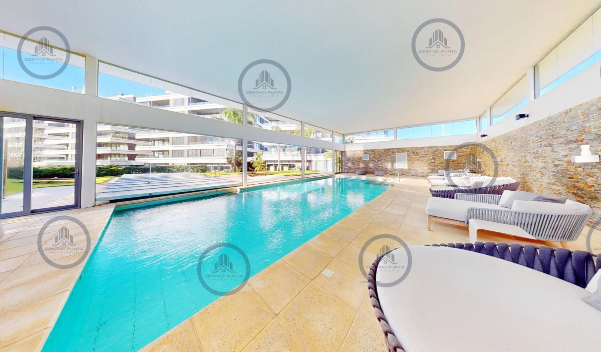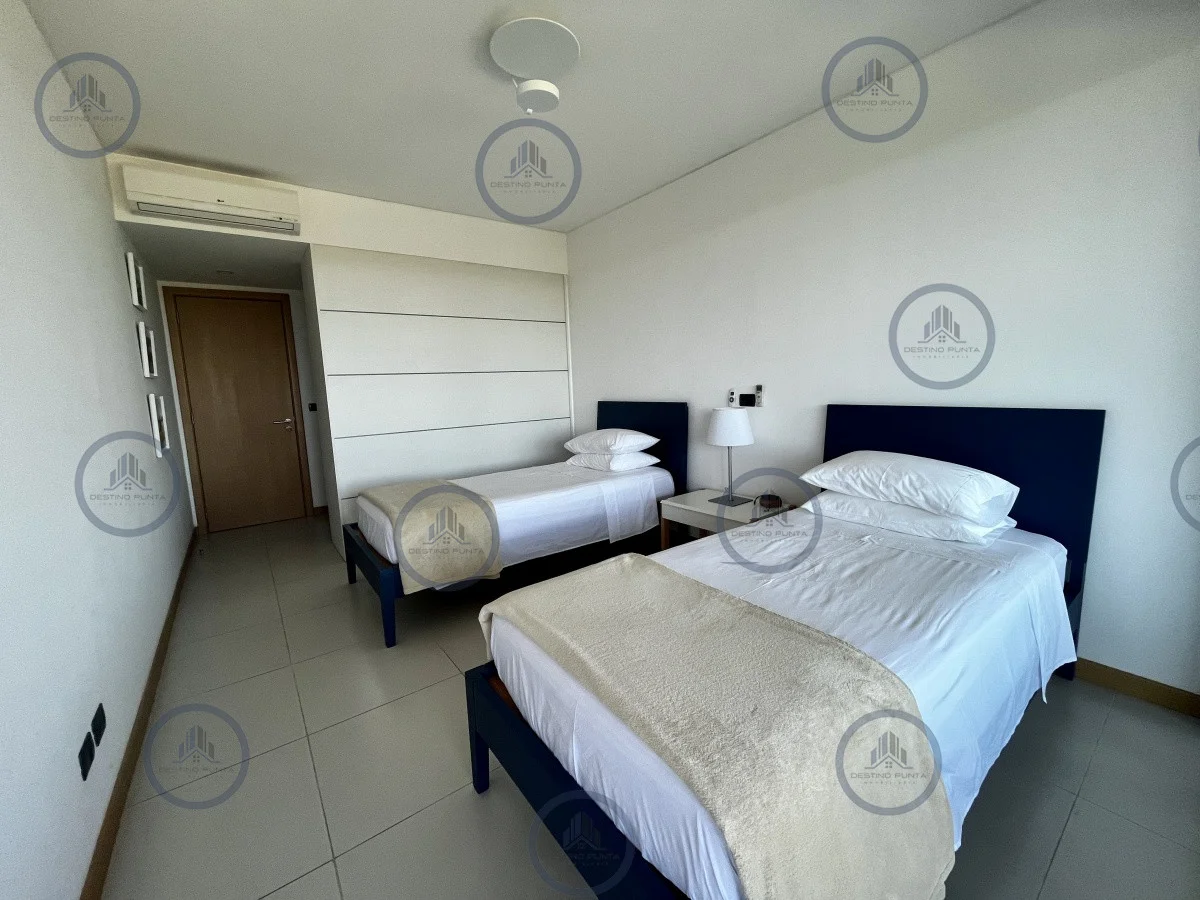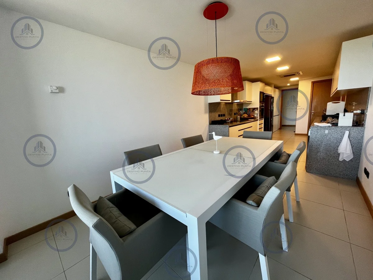 El apartamento posee tres suites, toilette, home theater, amplio living comedor con salida a la terraza principal desde donde se ve toda la barra, el arroyo y el mar.