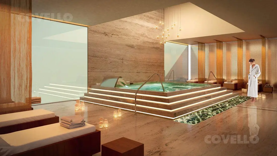 Trump Tower Spa preparado para tratamientos de salud y belleza. Sauna, baño finlandés, ducha escocesa, sala de masajes y vestuarios.