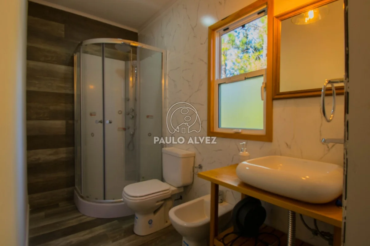 Hermosa propiedad ubicada en Balneario Solís. Sobre un gran predio de 1057m². Casa contenedor, distribuida en una planta. Living muy luminoso, con estufa a leña, comedor semi integrado. Cocina definida con muebles bajo mesada y aéreos. Tres cómodos dormitorios, el principal con vestidor. Dos baños completos, con cabina de ducha. Parrillero techado y gran predio enjardinado. Aberturas en aluminio y rejas. Finas terminaciones. No dude en coordinar visita.