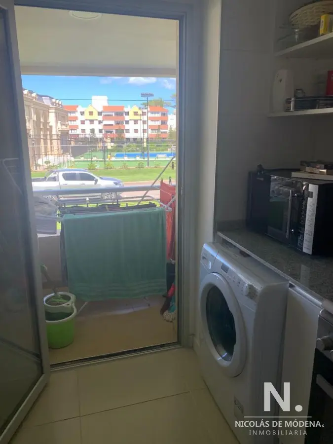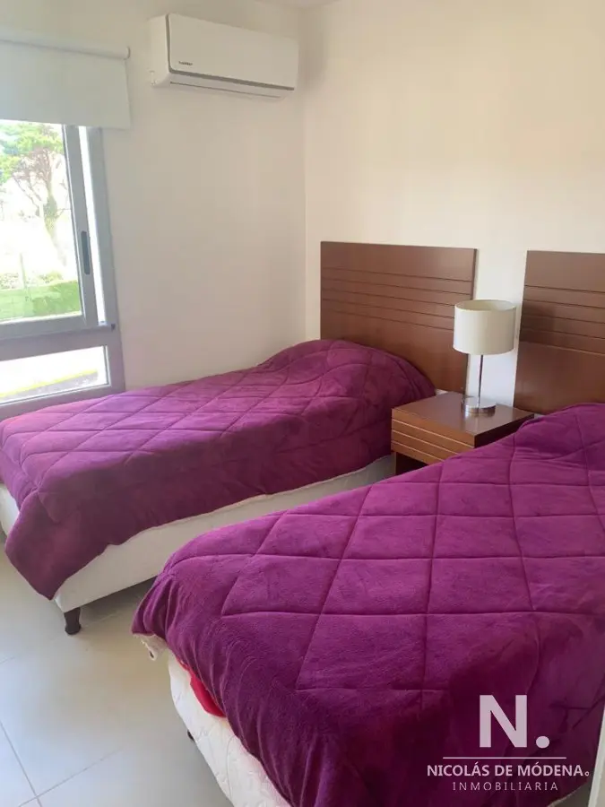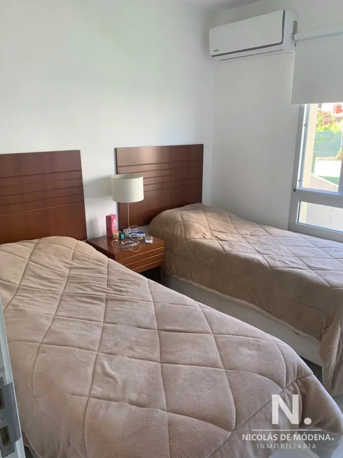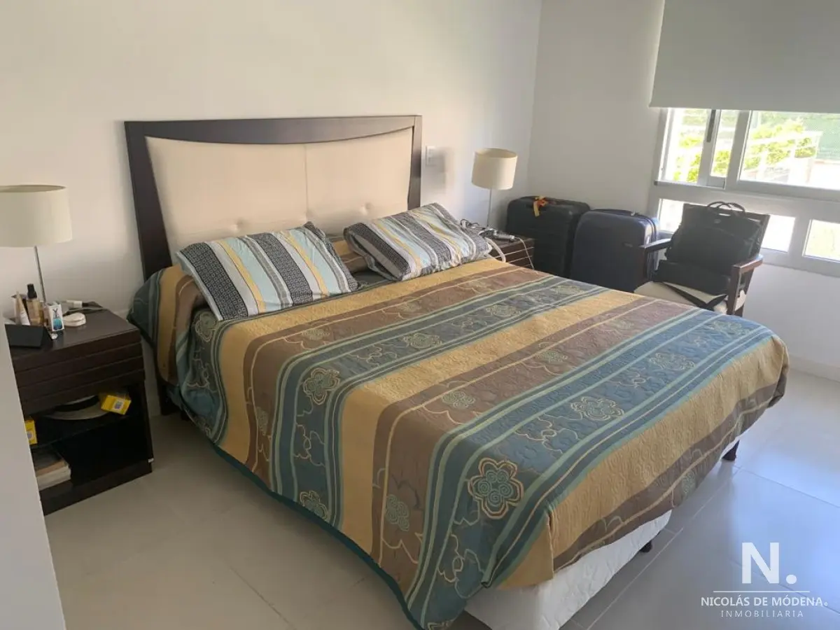 La unidad cuenta con 3 dormitorios, 2 baños y 1 suite, brindando capacidad para alojar hasta 6 personas cómodamente con sus 5 camas disponibles. La cocina, con lavadero integrado, está diseñada para la funcionalidad y está equipada con anafe, microondas, heladera con freezer, aire acondicionado, horno y campana extractora. Estas comodidades aseguran una estancia cómoda y conveniente.