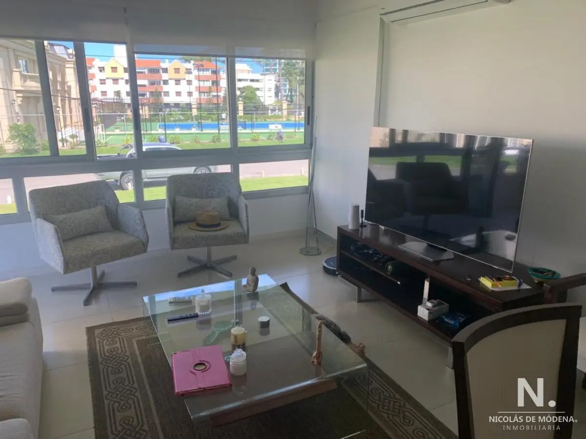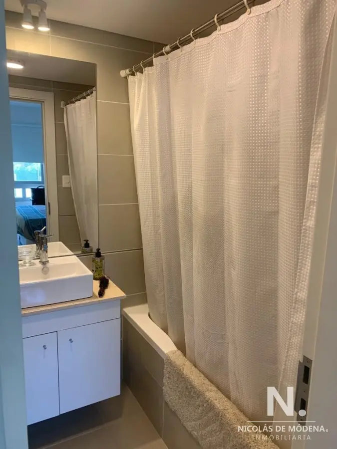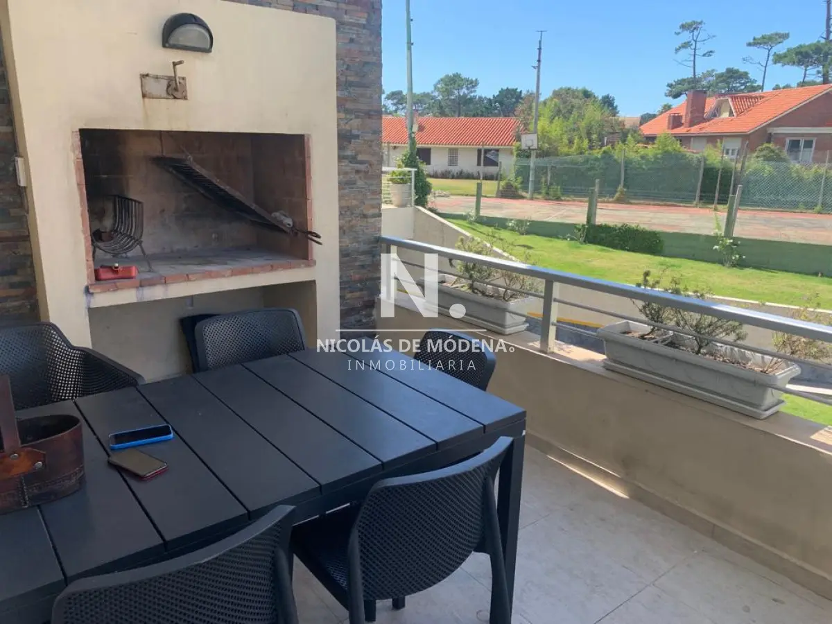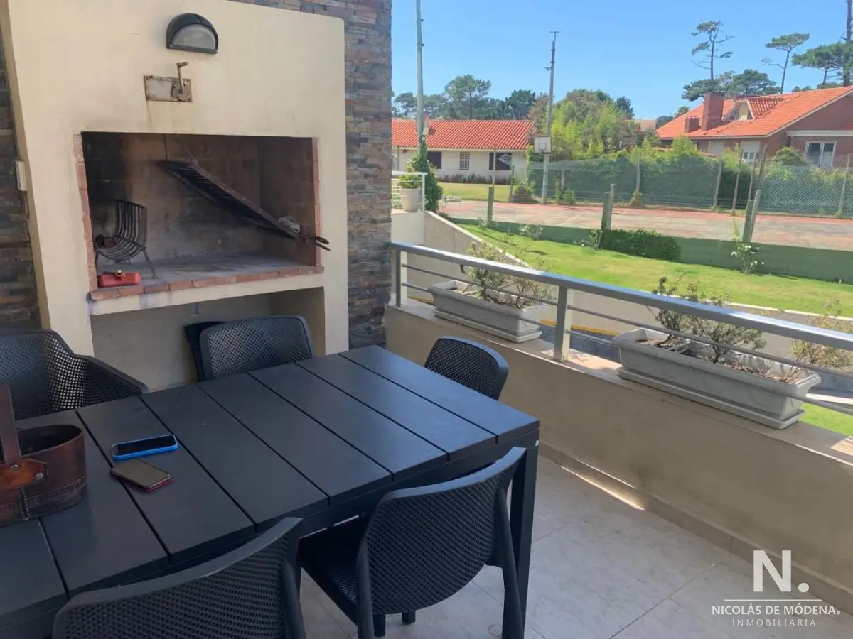 La unidad cuenta con 3 dormitorios, 2 baños y 1 suite, brindando capacidad para alojar hasta 6 personas cómodamente con sus 5 camas disponibles. La cocina, con lavadero integrado, está diseñada para la funcionalidad y está equipada con anafe, microondas, heladera con freezer, aire acondicionado, horno y campana extractora. Estas comodidades aseguran una estancia cómoda y conveniente.