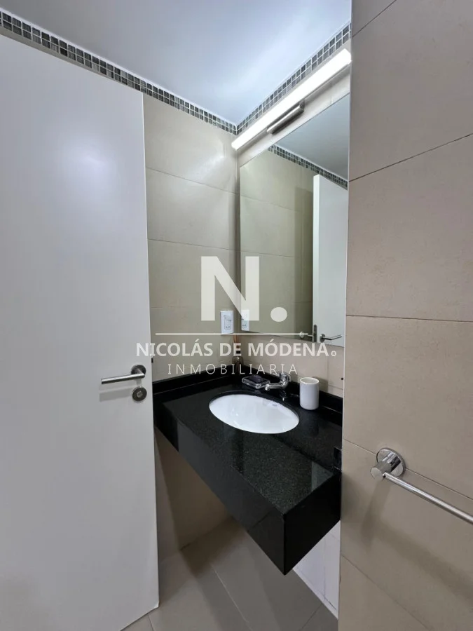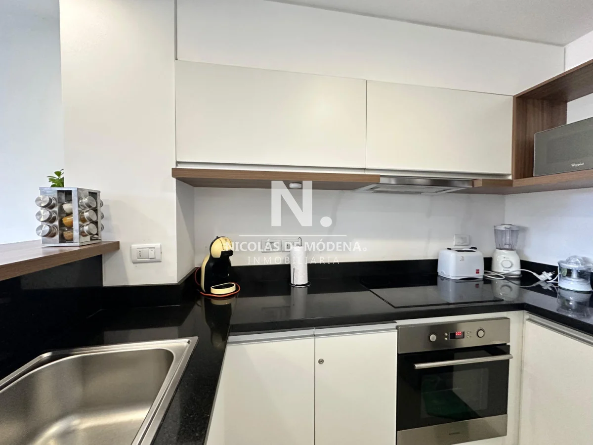 El área social se compone de un living-comedor amplio y acogedor, con ventanales que brindan excelente luminosidad natural. La cocina, completamente equipada, dispone de anafe, horno, microondas, heladera con freezer, campana, placard y aire acondicionado, complementando un espacio moderno y práctico. El dormitorio, con placard empotrado, invita al descanso y al confort, mientras que el baño cuenta con bidet y terminaciones de calidad.