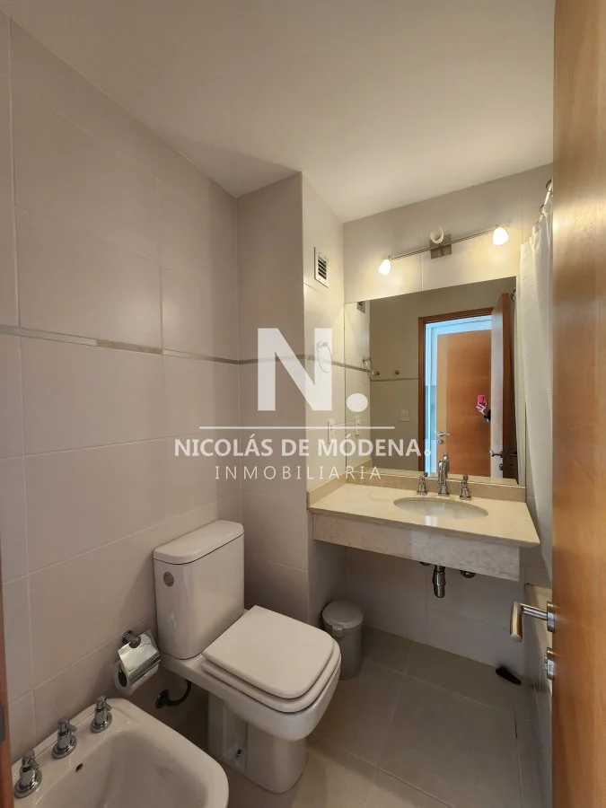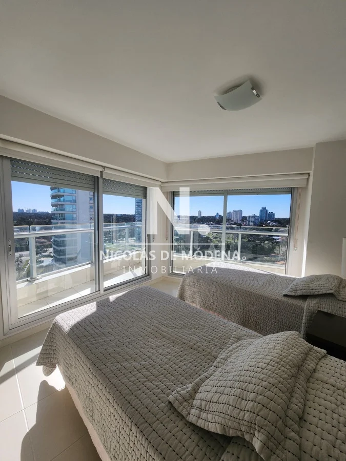 El diseño interior del apartamento incluye un amplio living y comedor, contando con un equipamiento adicional del apartamento incluye aire acondicionado en todos los ambientes, televisión y Smart TV para el entretenimiento y conveniencia de los ocupantes. Los dormitorios y la cocina disponen de placards para un almacenamiento organizado, mientras que los baños están equipados con bañera y bidet para mayor confort.