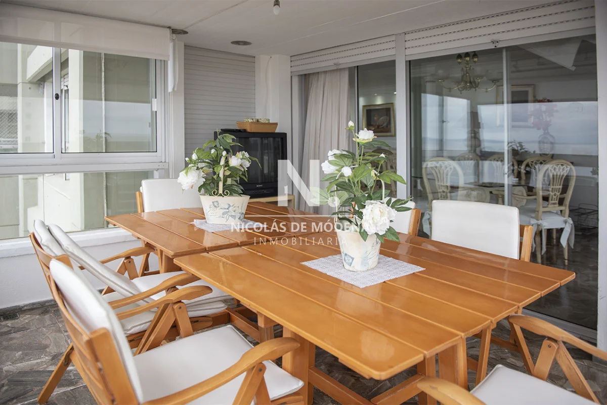 Apartamento en venta en la zona de Mansa, Punta del Este, con una ubicación privilegiada frente al mar, ideal para quienes buscan confort, amplitud y vistas espectaculares. La unidad cuenta con 3 dormitorios y 2 baños, incluyendo 1 suite, con capacidad para alojar cómodamente hasta 7 personas.
