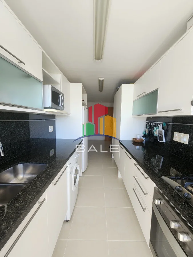 El diseño interior del apartamento incluye un amplio living y comedor, contando con un equipamiento adicional del apartamento incluye aire acondicionado en todos los ambientes, televisión y Smart TV para el entretenimiento y conveniencia de los ocupantes. Los dormitorios y la cocina disponen de placards para un almacenamiento organizado, mientras que los baños están equipados con bañera y bidet para mayor confort.