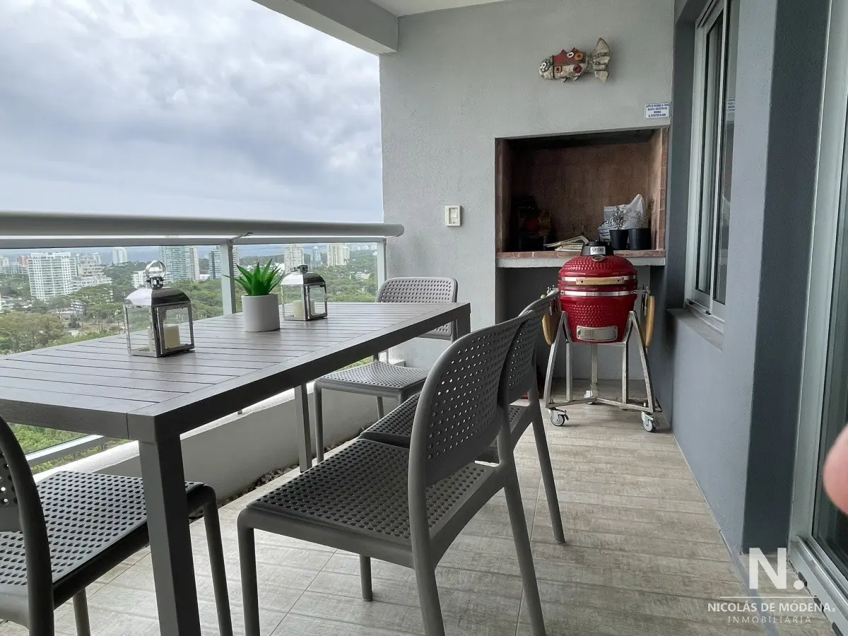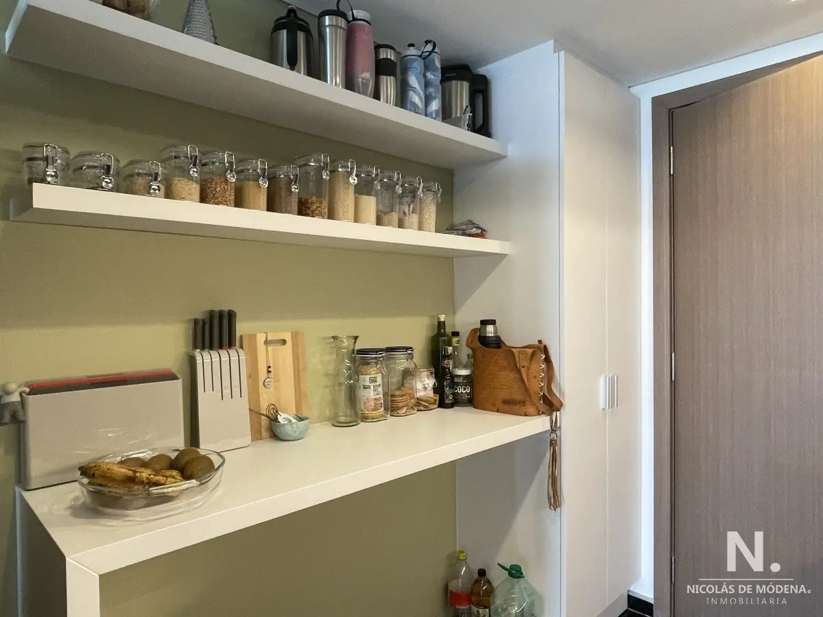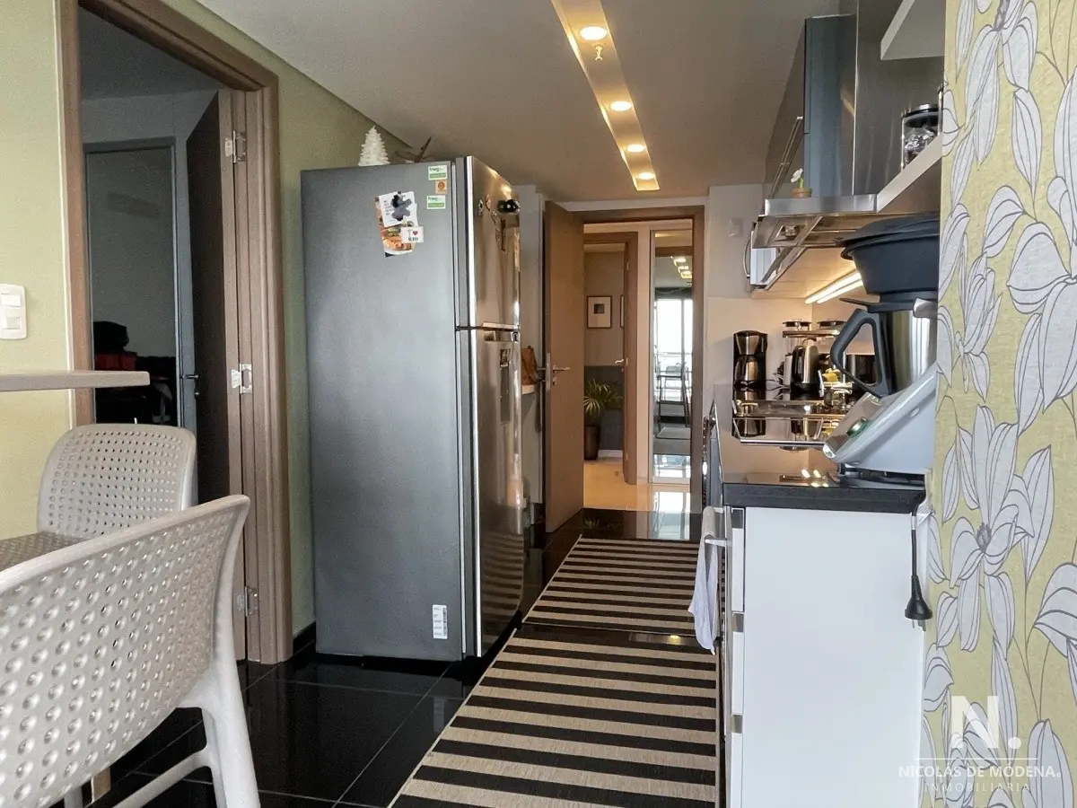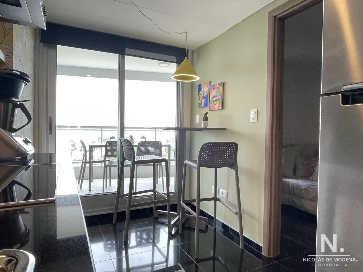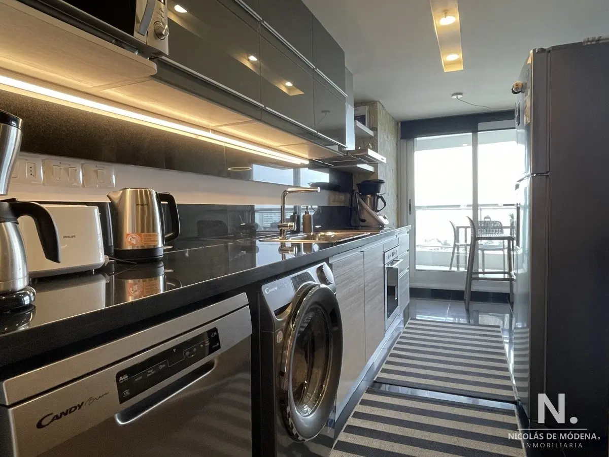 La cocina, con un desayunador, se integra de manera armoniosa con el área de living comedor, creando un espacio abierto y social teniendo en cuenta que entre su equipamiento incluye anafe, microondas, lavarropas, lavavajilla, heladera con freezer, tostadora, aire acondicionado, smart TV, placards en los dormitorios y en la cocina, campana, horno y bañera. Estos detalles y equipamientos añaden comodidad y funcionalidad al apartamento, asegurando que los residentes disfruten de una estancia agradable y cómoda.