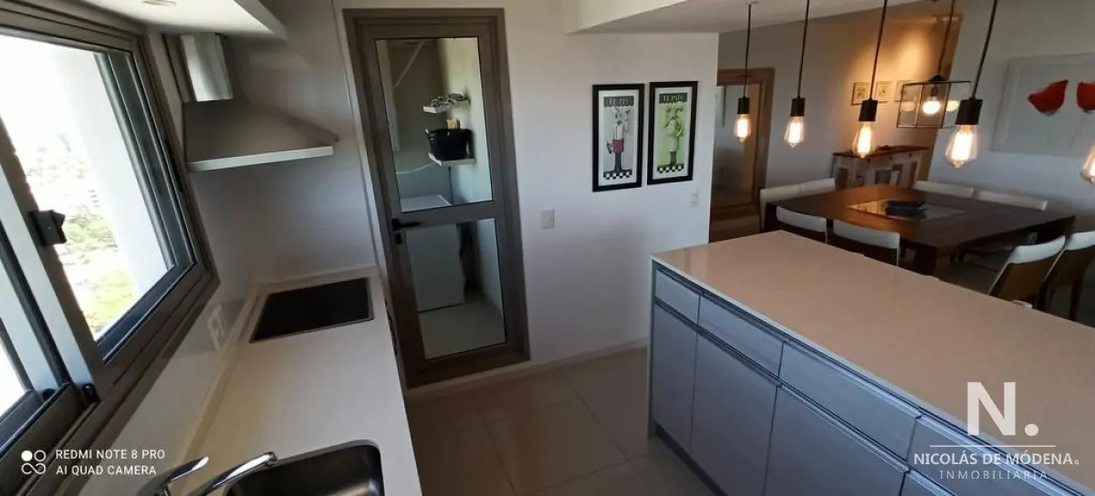 La cocina, integrada con el área de estar y el comedor, crea un ambiente social y familiar. Equipada con anafe, lavarropas, lavavajilla, heladera con freezer, y todos los elementos esenciales, esta cocina está lista para satisfacer las necesidades culinarias de los residentes.