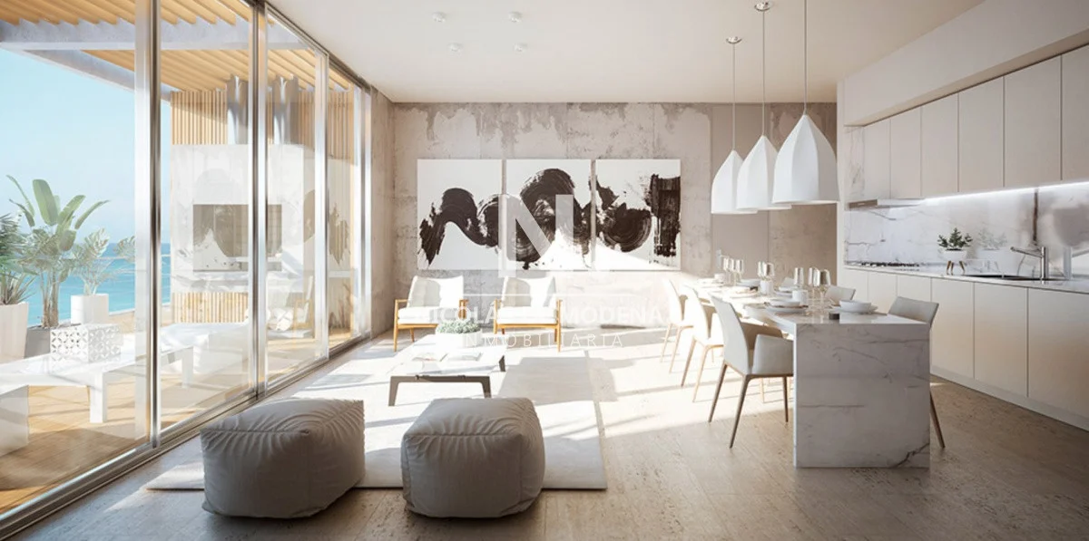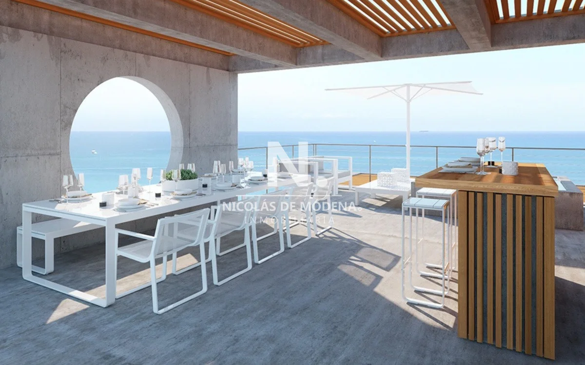 El amplio balcón es uno de los puntos destacados de la propiedad, ya que cuenta con un parrillero integrado, perfecto para disfrutar de momentos al aire libre con vistas panorámicas al océano. El diseño luminoso y moderno del living comedor se complementa con la espectacular vista, brindando un espacio acogedor para relajarse o recibir visitas.