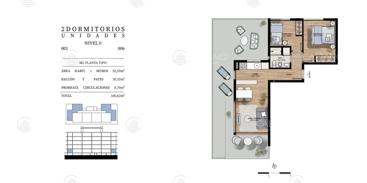 Cuenta con Unidades de 1 y 2 dormitorios, con servicios como SUM-Barbacoa con vistas hacia