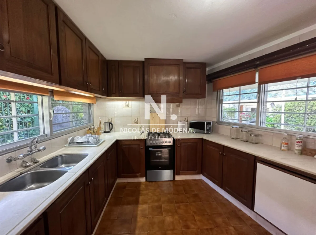 Desarrollada en dos plantas, la propiedad se levanta sobre un terreno de 1132 m², con una superficie construida de 312 m², y presenta una distribución pensada para brindar comodidad, privacidad y espacios amplios para la vida familiar o el entretenimiento. En la planta baja, se destaca un amplio y luminoso living con estufa a leña, ideal para disfrutar todo el año, conectado al comedor principal, una acogedora sala de estar tipo comedor diario, y una cocina completa equipada con muebles aéreos y bajo mesada que combinan practicidad con buen gusto. En este nivel también se ubican un dormitorio de servicio con baño, además de dos dormitorios adicionales con placares y dos baños completos.