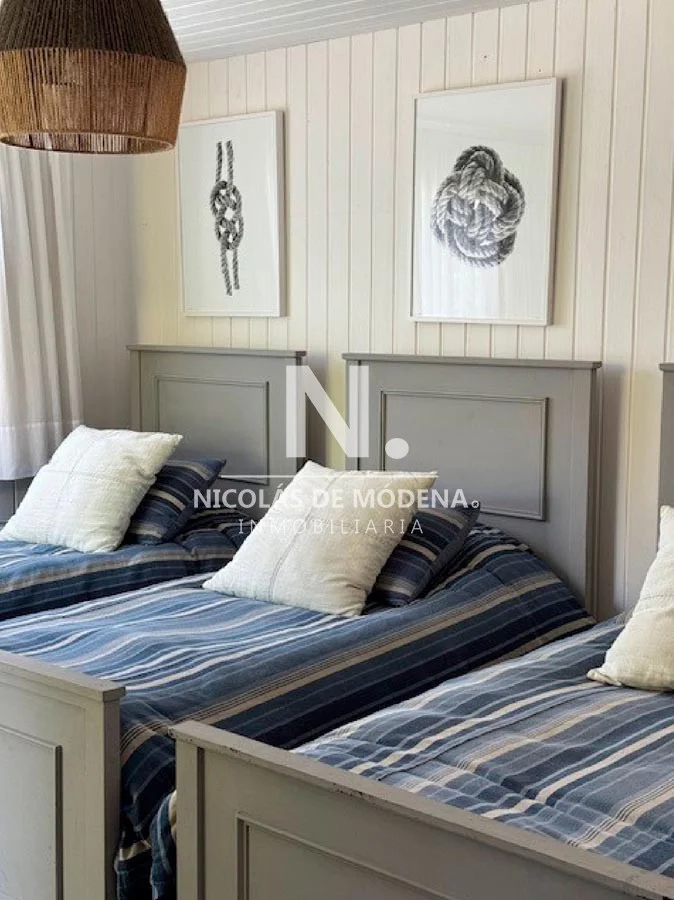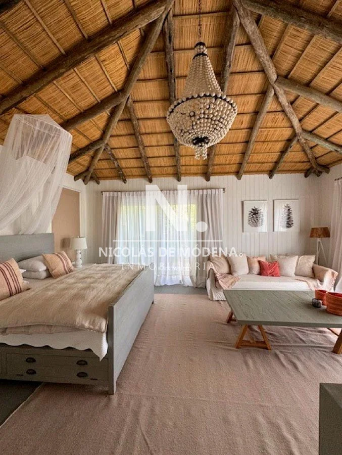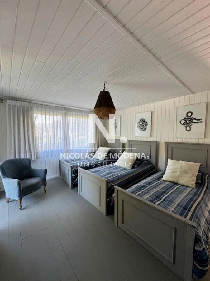 Distribuida en una planta amplia y luminosa, la propiedad cuenta con seis dormitorios en suite, cada uno cuidadosamente diseñado para brindar privacidad y descanso. La capacidad total es para 18 personas, con espacio de dormir para 13: dos cuartos con camas king size, uno con cama queen, dos cuartos con camas individuales y uno con tres camas. Además, se destacan dos dependencias en suite que ofrecen soluciones cómodas y funcionales para servicio o huéspedes adicionales.