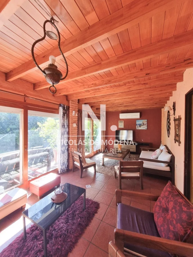 Con un total de 4 dormitorios y 3 baños, la casa tiene la capacidad de alojar a hasta 9 personas. La distribución interior incluye una cocina definida, una sala de esta integrada en un living comedor amplio, creando un ambiente versátil y funcional.
