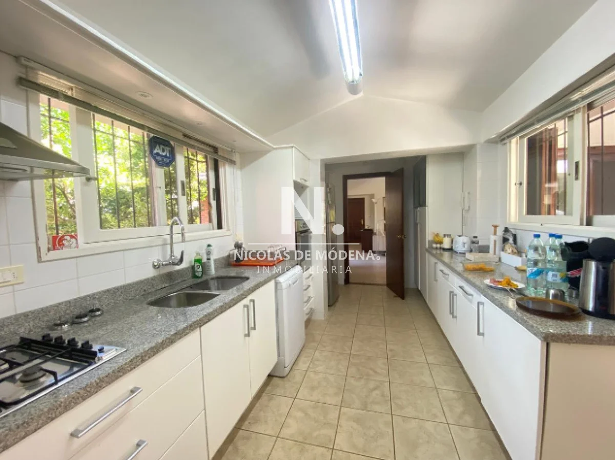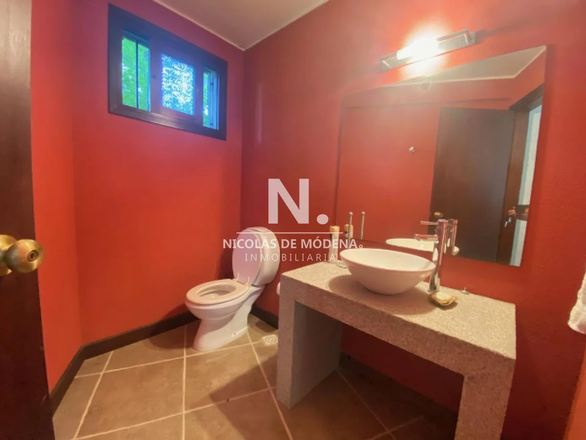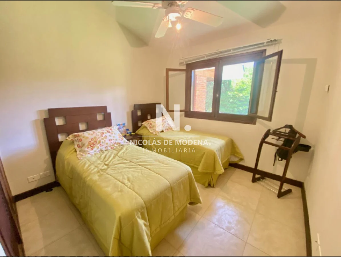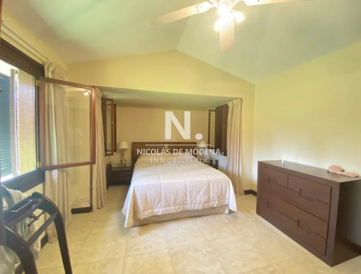 El diseño incluye cocheras techadas en la planta alta con capacidad para tres autos y una cochera adicional en el subsuelo, ofreciendo amplio espacio para el estacionamiento de vehículos. La casa está equipada con aire acondicionado, TV, placares en los dormitorios y la cocina, y se encuentra en un excelente estado de conservación, siendo una de las pocas en este nivel de mantenimiento en la zona.