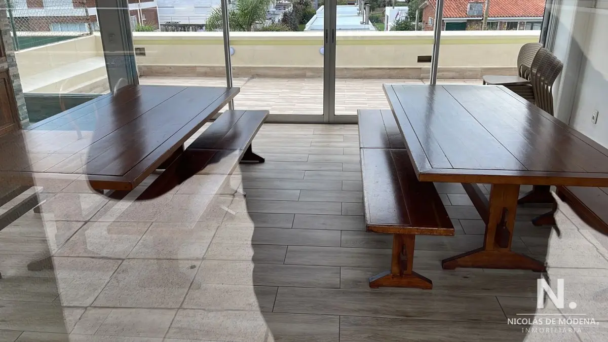 La distribución interior destaca por una cocina con lavadero integrado, un amplio living y comedor que proporcionan un espacio acogedor y funcional. Además, se incluye el servicio de mucamas para mantener la vivienda en perfecto estado.