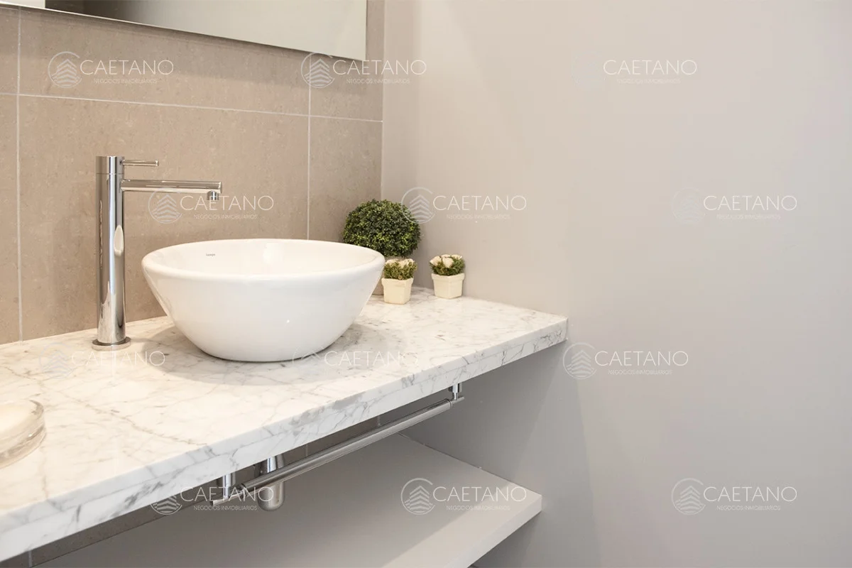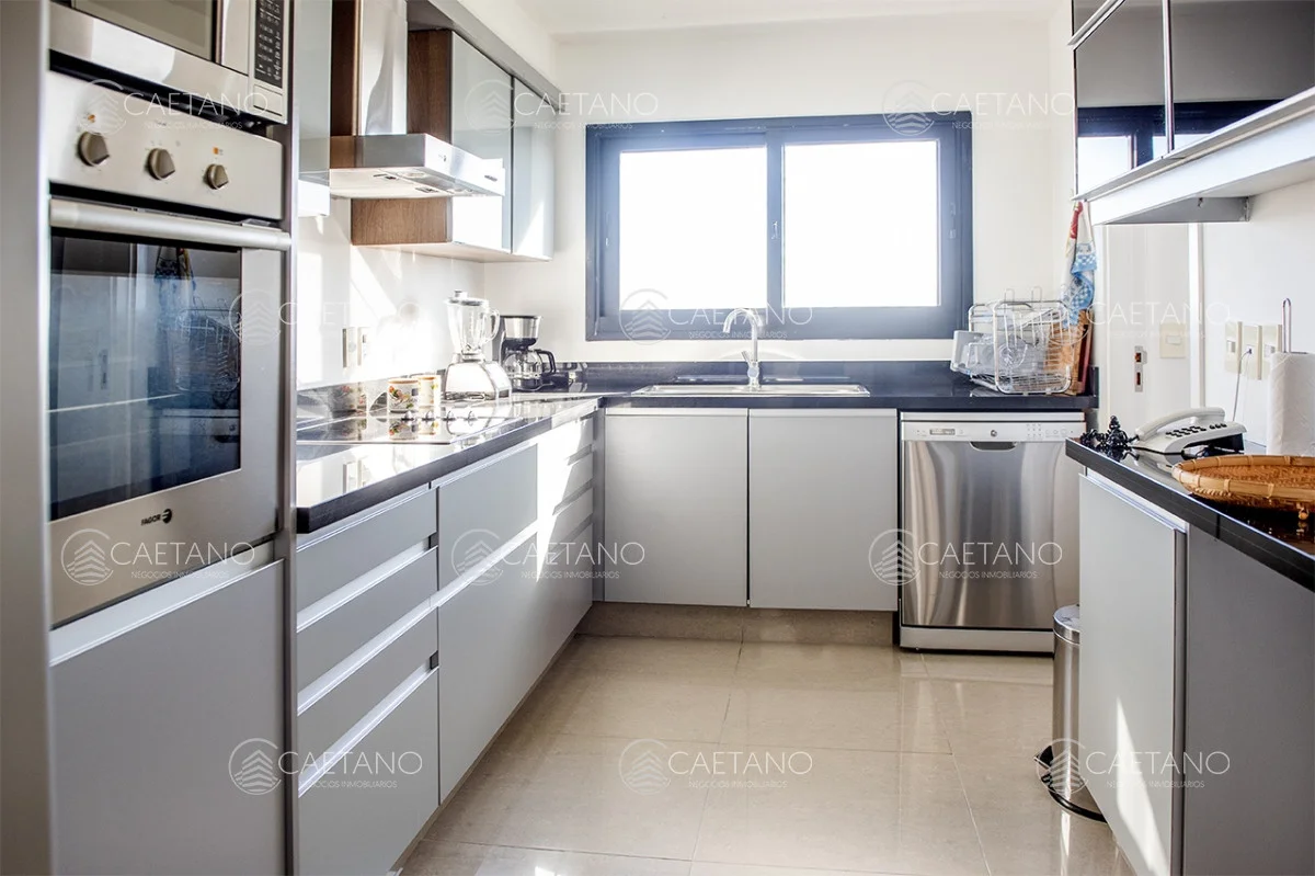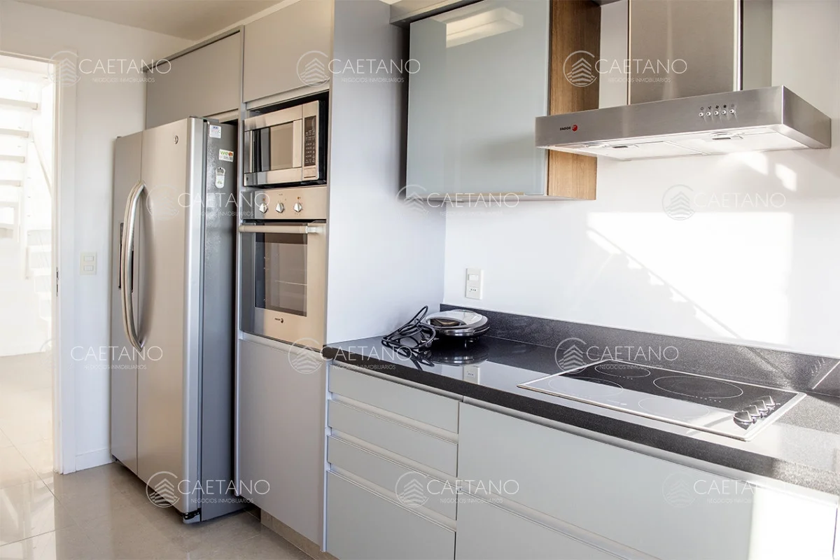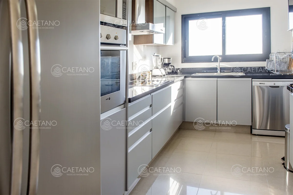 La cocina se presenta en un estilo americano equipada con anafe, heladera con freezer, horno y campana extractora. El área de estar comprende un amplio living comedor, proporcionando un espacio abierto y versátil para la convivencia y el entretenimiento.