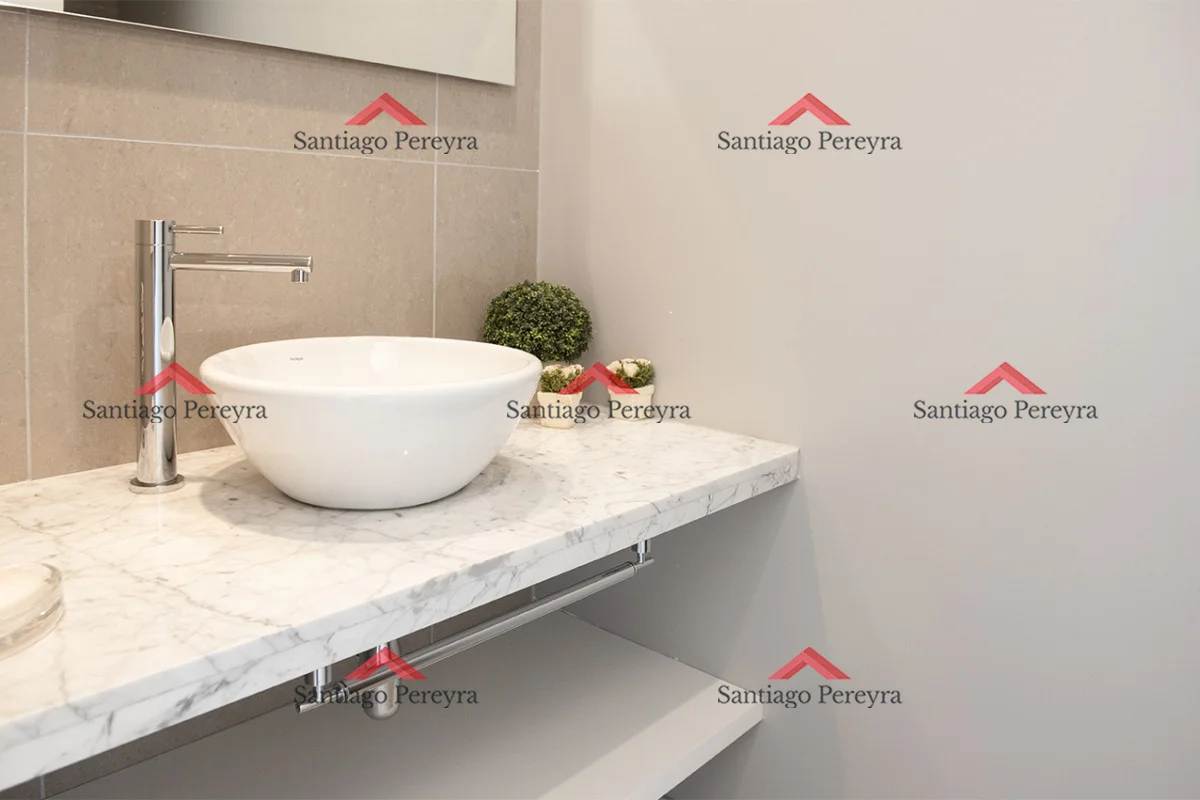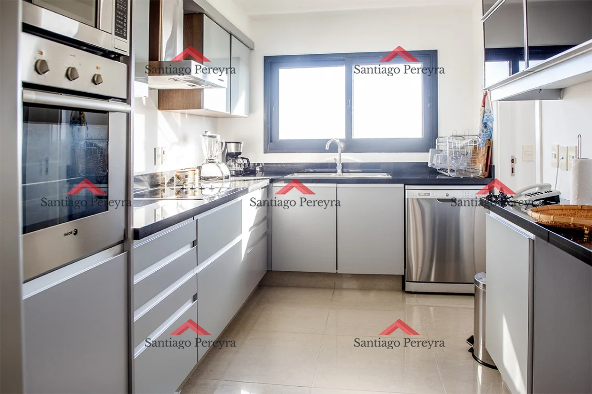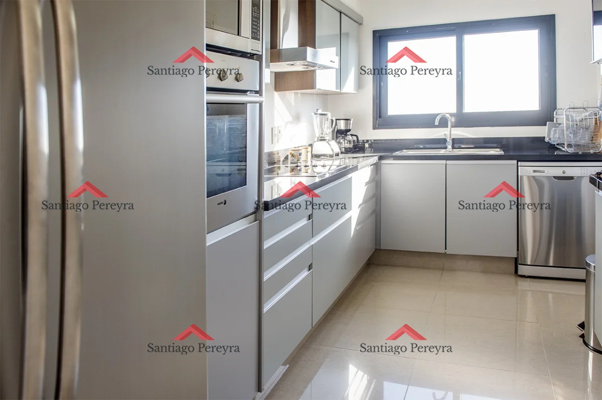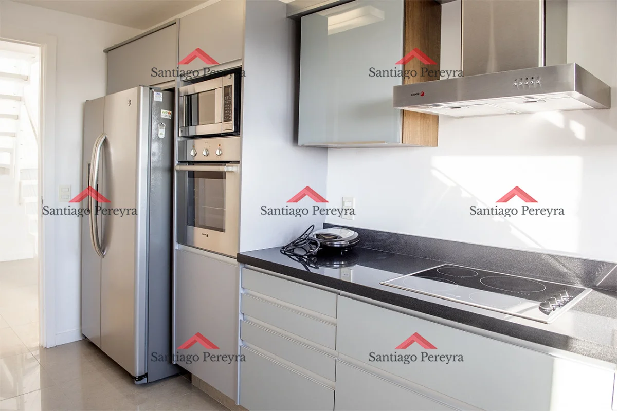 La cocina se presenta en un estilo americano equipada con anafe, heladera con freezer, horno y campana extractora. El área de estar comprende un amplio living comedor, proporcionando un espacio abierto y versátil para la convivencia y el entretenimiento.