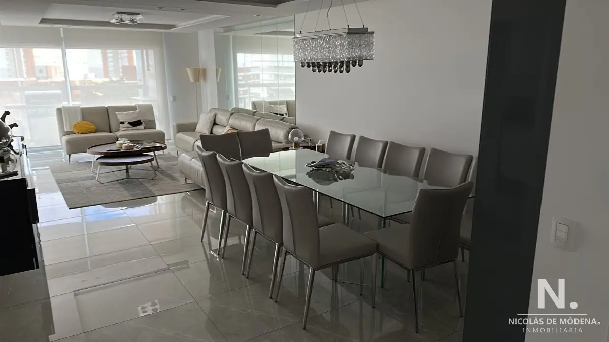 La cocina es definida, lo que indica que tiene un espacio separado y bien organizado para la preparación de alimentos. Además, el apartamento incluye áreas de estar y comedor independientes, ofreciendo distintos espacios para la convivencia y el entretenimiento.