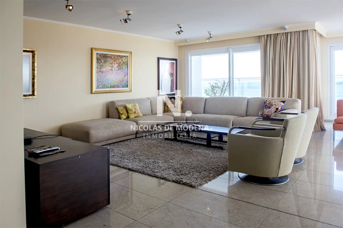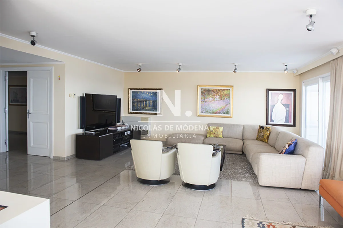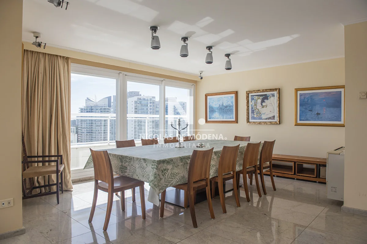 Este amplio apartamento de 320 m² cuenta con 4 dormitorios, de los cuales 4 son suites, y 6 baños, ofreciendo un espacio ideal para familias o para quienes buscan un estilo de vida exclusivo. La cocina, perfectamente equipada, se integra con un luminoso living y un acogedor comedor, creando un ambiente perfecto para compartir momentos inolvidables.