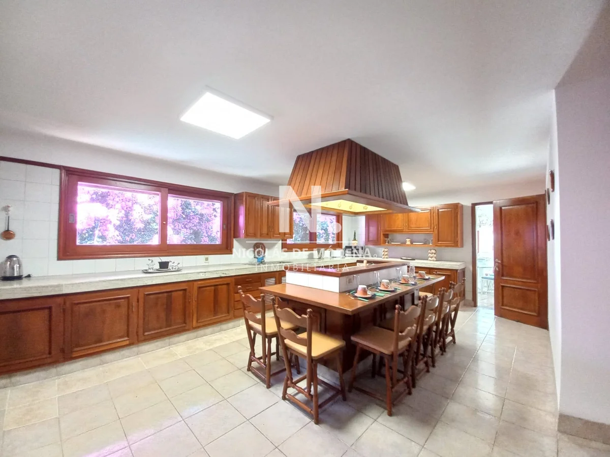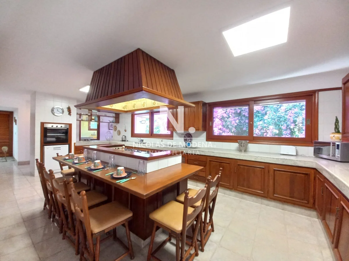 Barbacoa cerrada con parrillero y comunicación al jardín. Amplia piscina climatizada