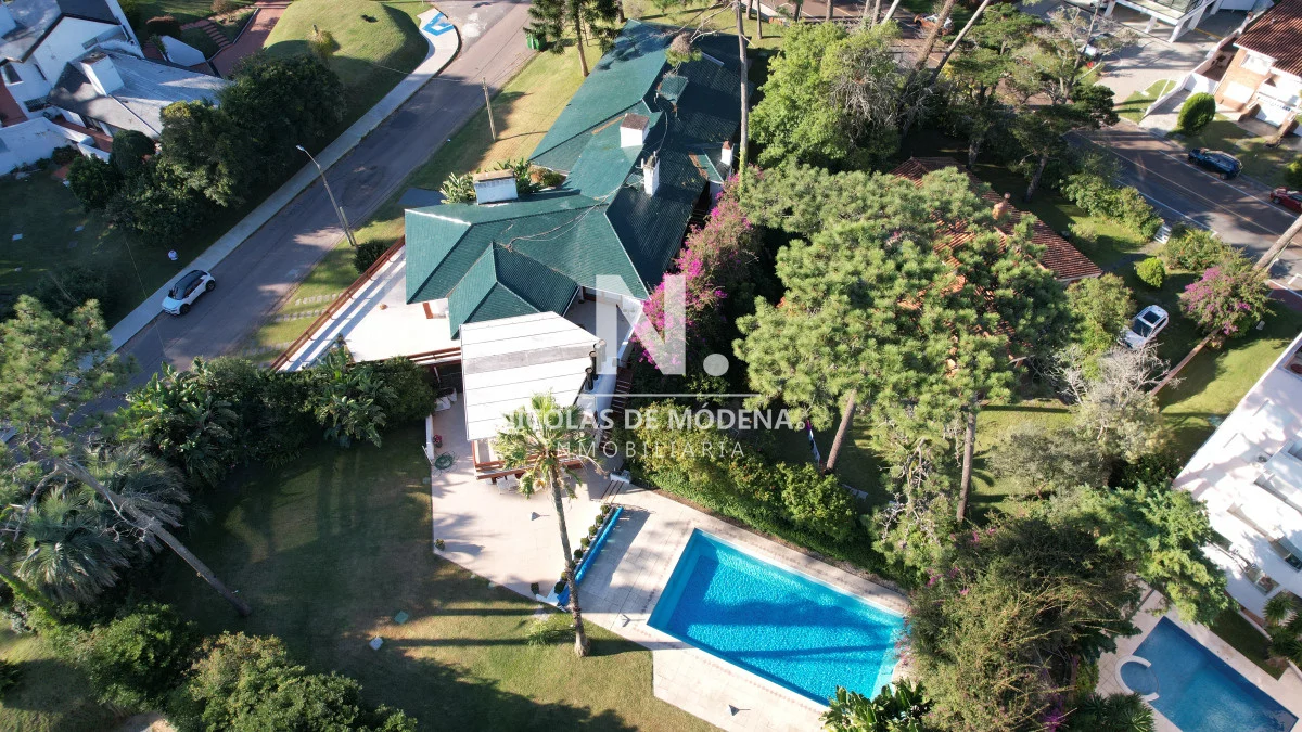 Consta en planta alta de 5 dormitorios en suite, más toilette de recepción, amplio living comedor, sala de estar son parrillero techado, cocina con doble circulación definida y comedor diario.