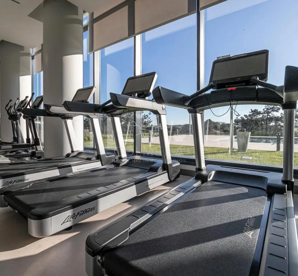 Piscina exterior de 25 metros, piscinas cerradas (una general, otra solo para adultos), sauna seco y húmedo, sala de masajes, gimnasio bien equipado, salas de juego independientes: para niños, adolescentes y adultos, microcine, sala de reuniones, múltiples barbacoas (4, 12, etc. según fuente) y salón de fiestas, canchas deportivas: tenis, cancha multipropósito, boulevard interno amplio, rodeado de parque y vegetación, que conecta el lobby principal con los amenities del edificio y servicio de seguridad de nivel.