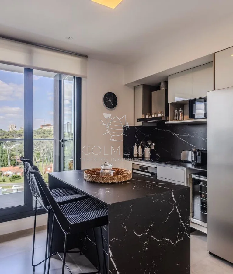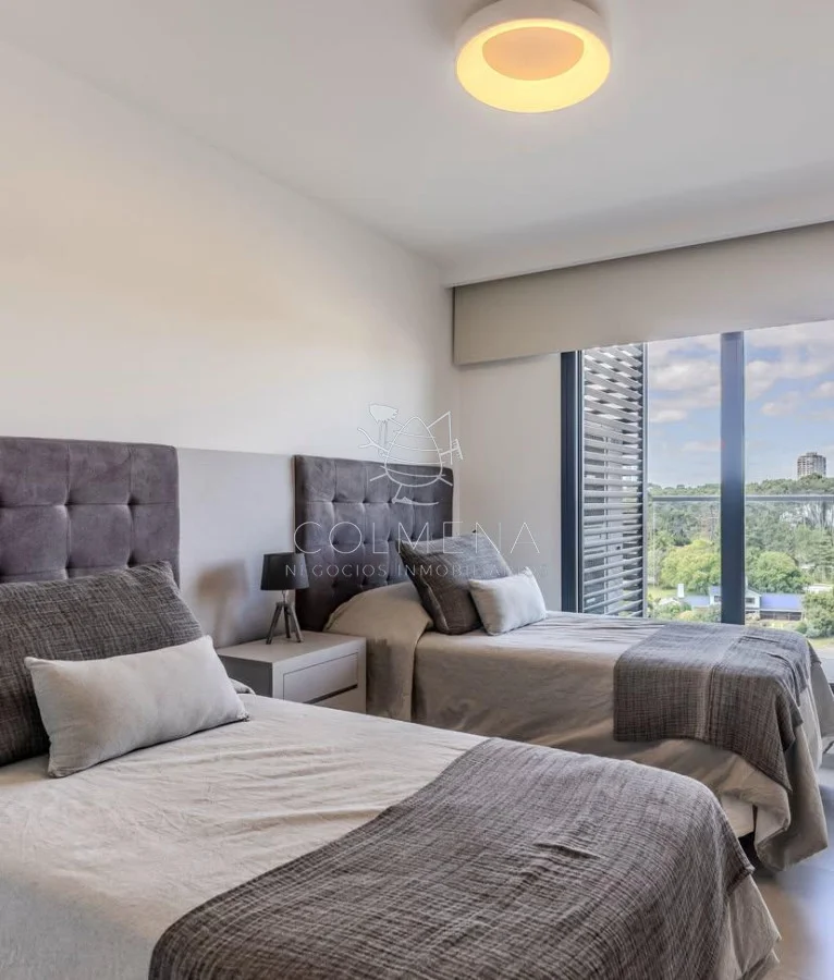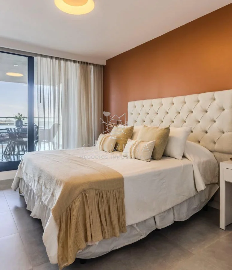 Tres apartamentos de dos dormitorios, tres baños y garaje de 150 m2 son con las más finas terminaciones y diseñadas para maximizar la luz natural y las vistas panorámicas a la bahía, Isla Gorriti y al espejo de agua de Playa Mansa.