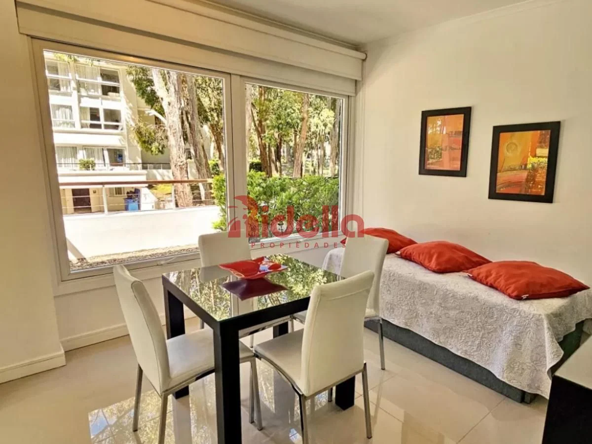 Es un Monoambiente semi definido, ya que tiene una pequeña división que separa la cocina living comedor dando mayor privacidad al espacio del dormitorio, cuenta con baño completo, cocina integrada a living comedor, amplios ventanales que permiten bueno iluminación natural y buena ventilación, el edificio es ideal para vivir todo el año ya que cuenta con una amplia variedad de servicios: