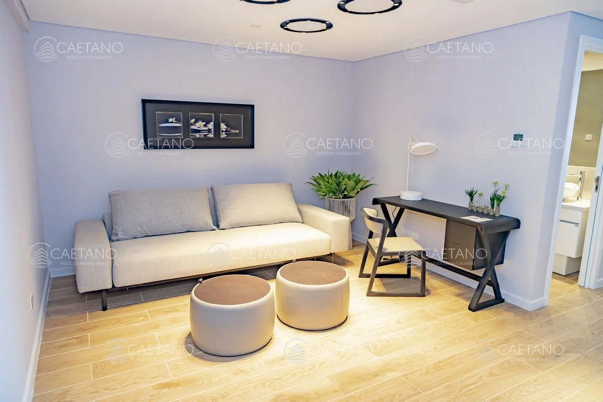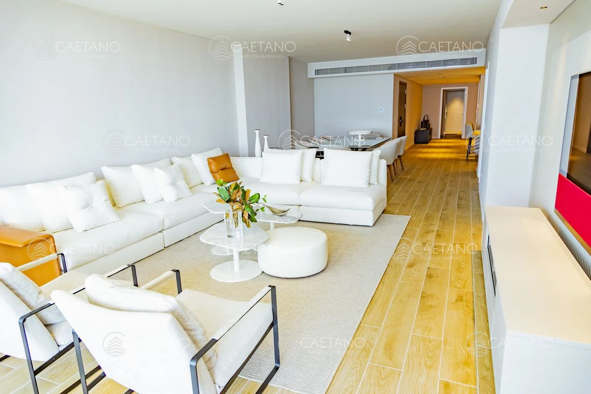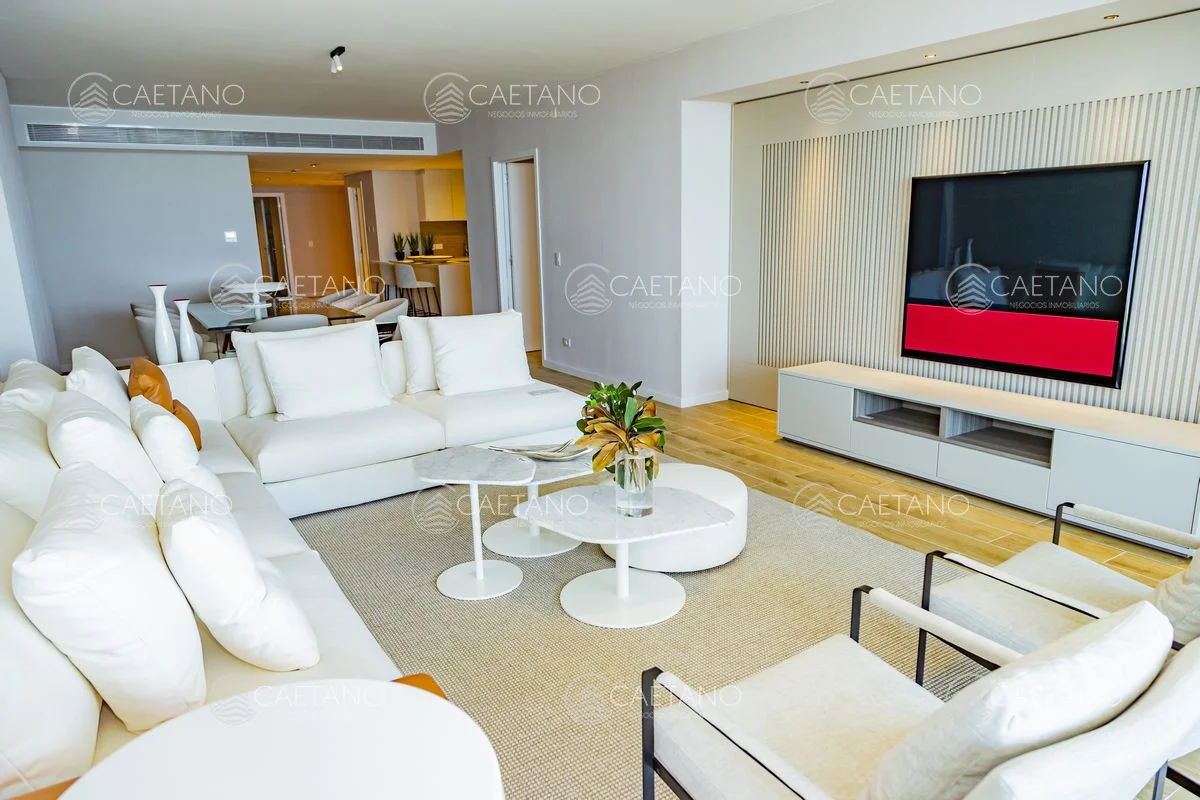 Esta unidad cuenta con amplio living comedor con vista al mar, salida a terraza. Un dormitorio en suite más toilette, cocina integrada. Además agrega un espacio que puede ser utilizado como play room o medio dormitorio y lavadero.