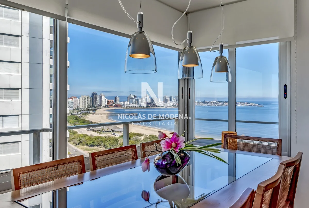 Amplia sala de estar y comedor con vistas panorámicas.