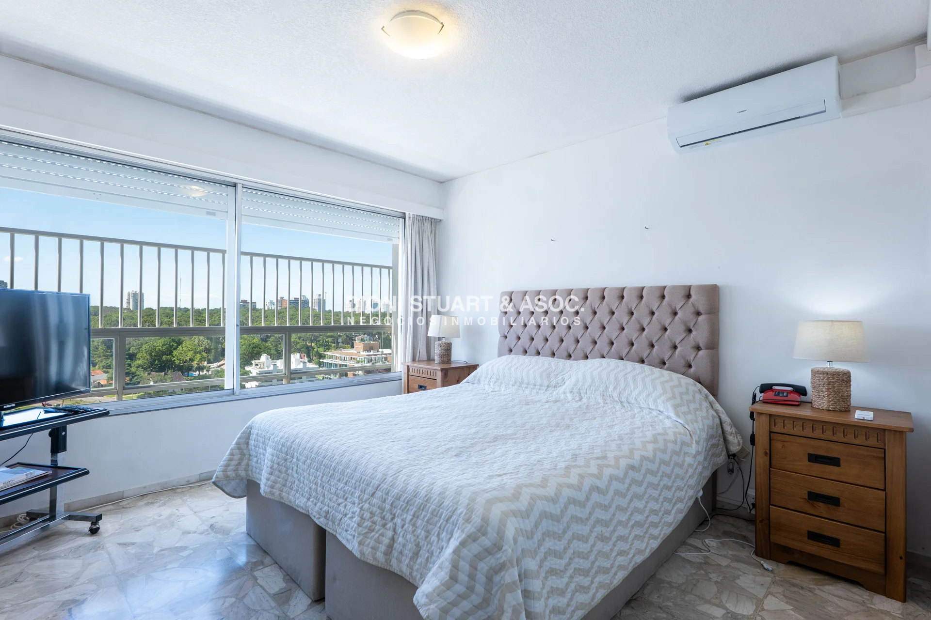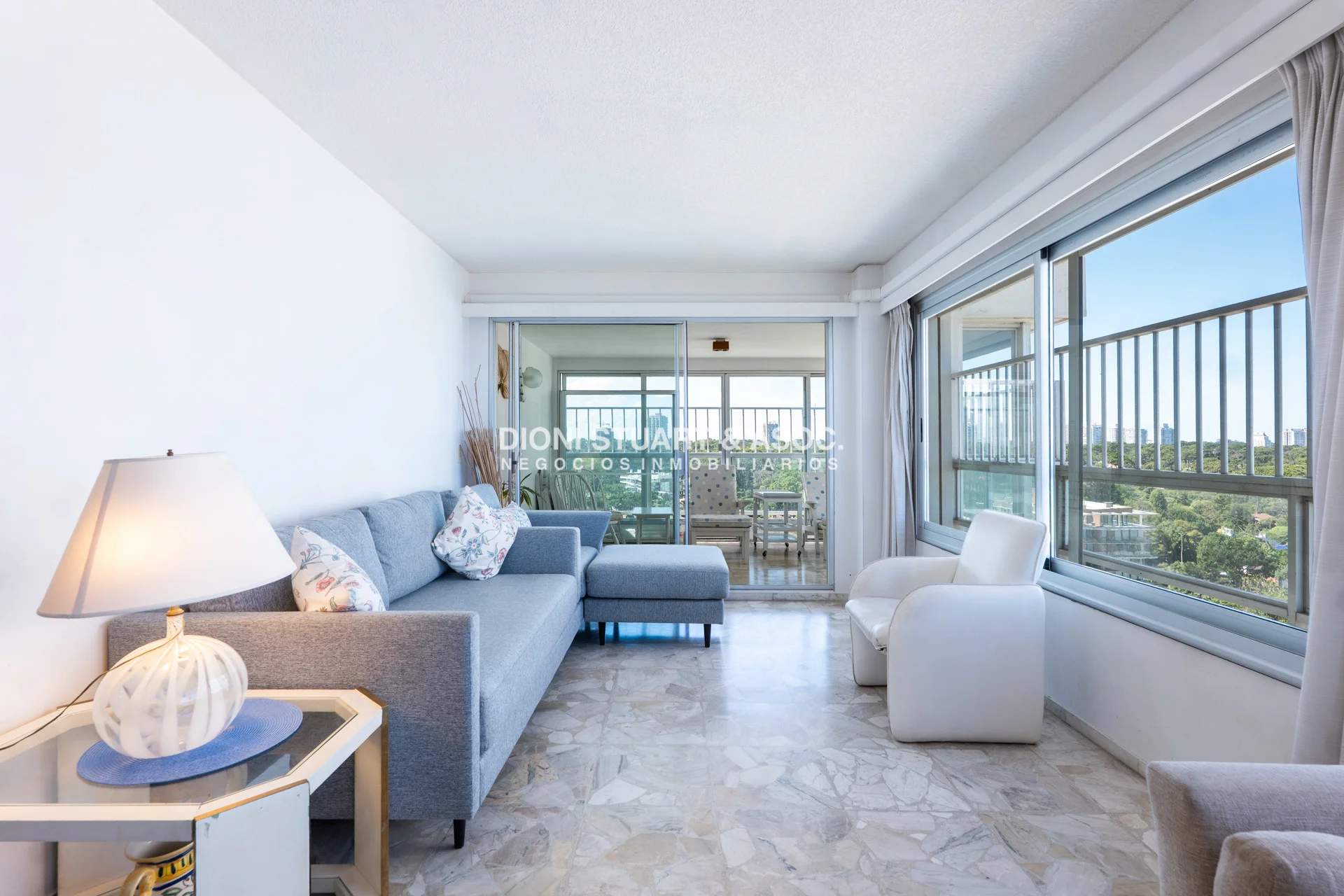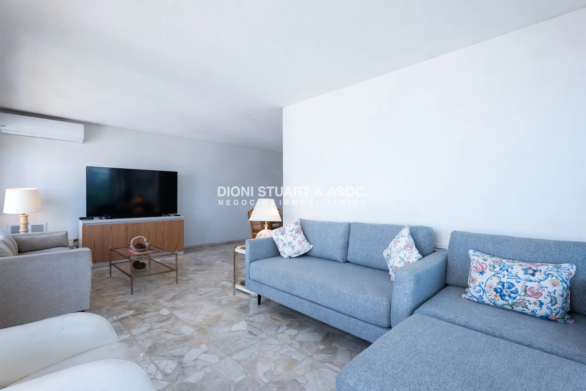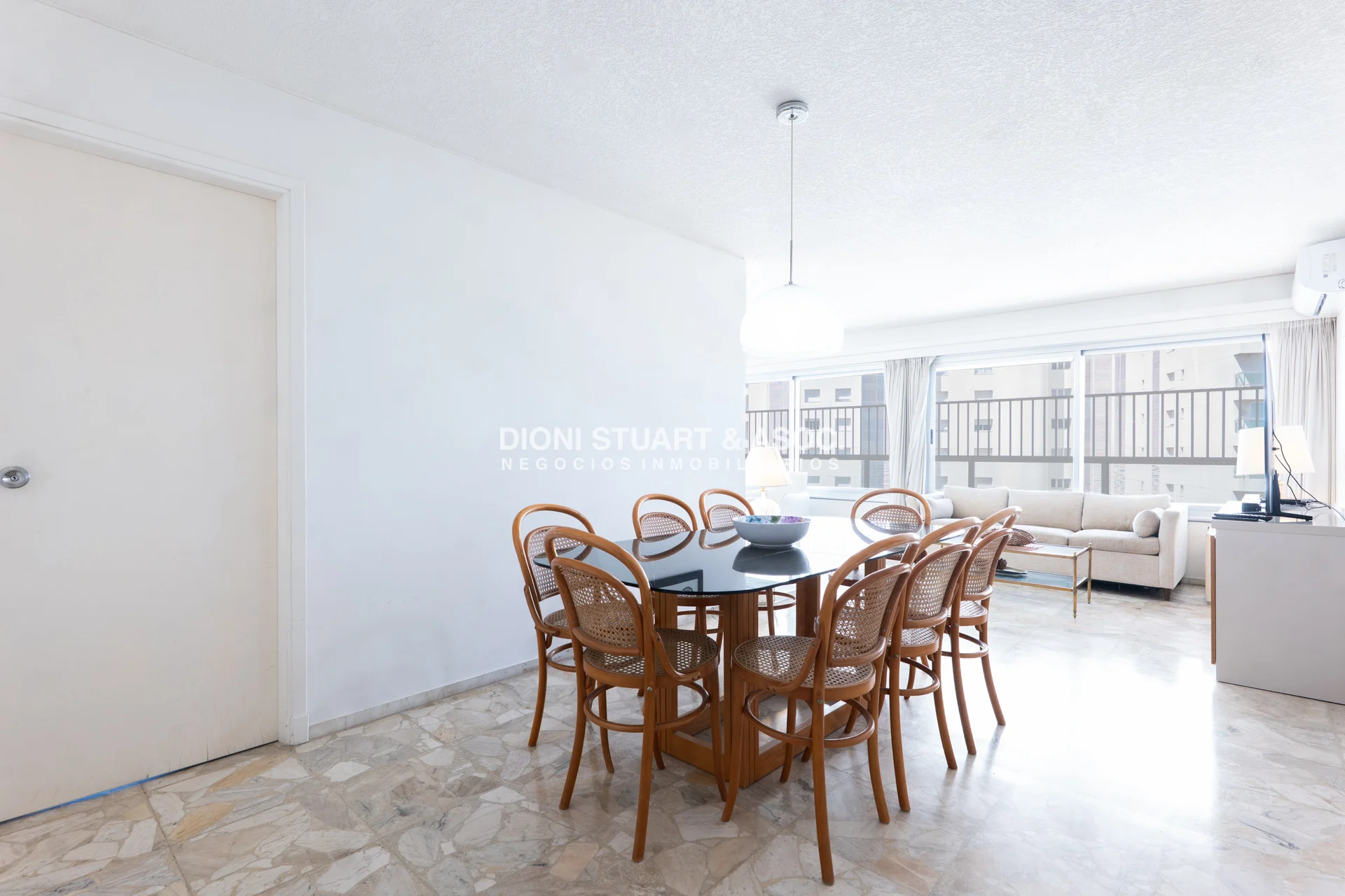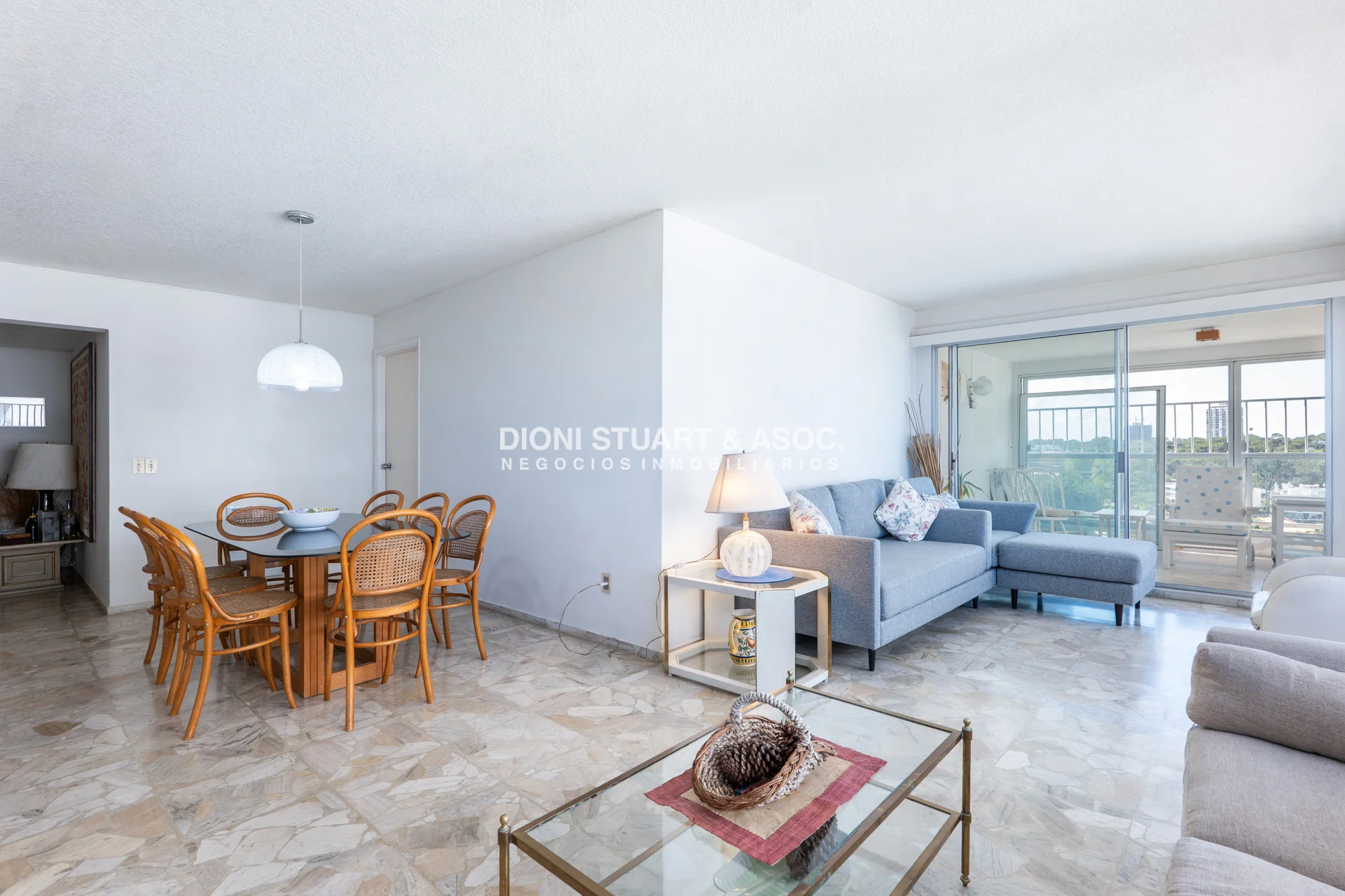 Apartamento de 120 m2 totales, con un amplio living-comedor en forma de L, cocina definida con lavadero, 2 dormitorios y medio y 2 baños (1 en suite).