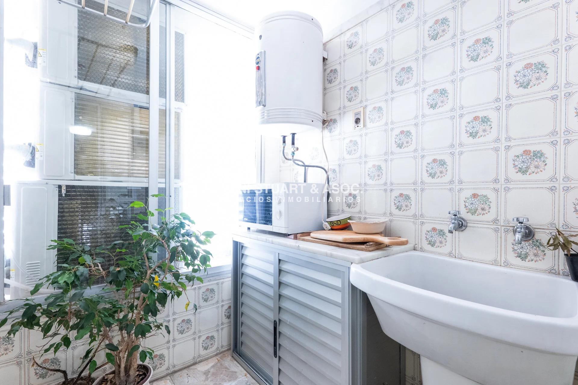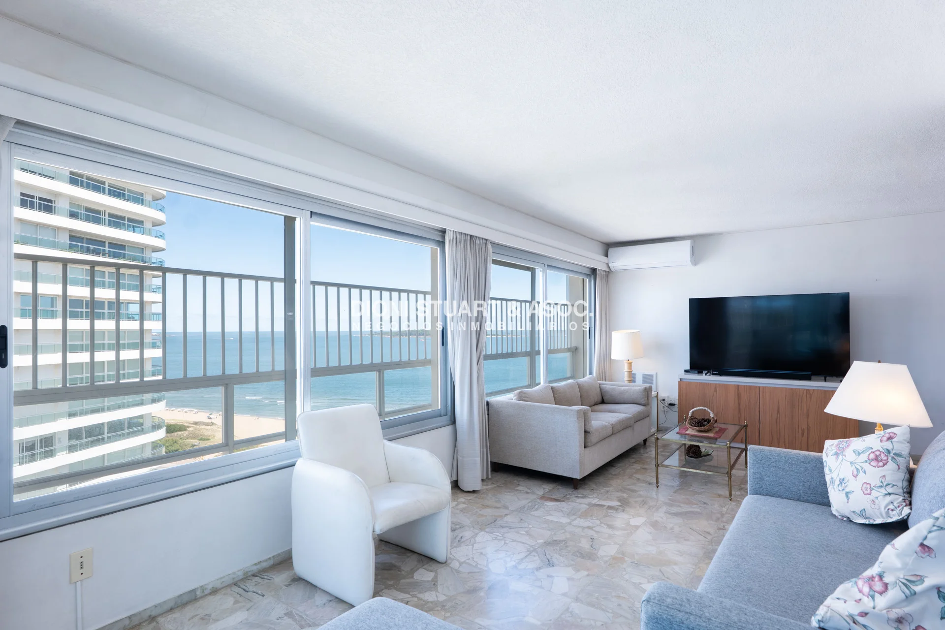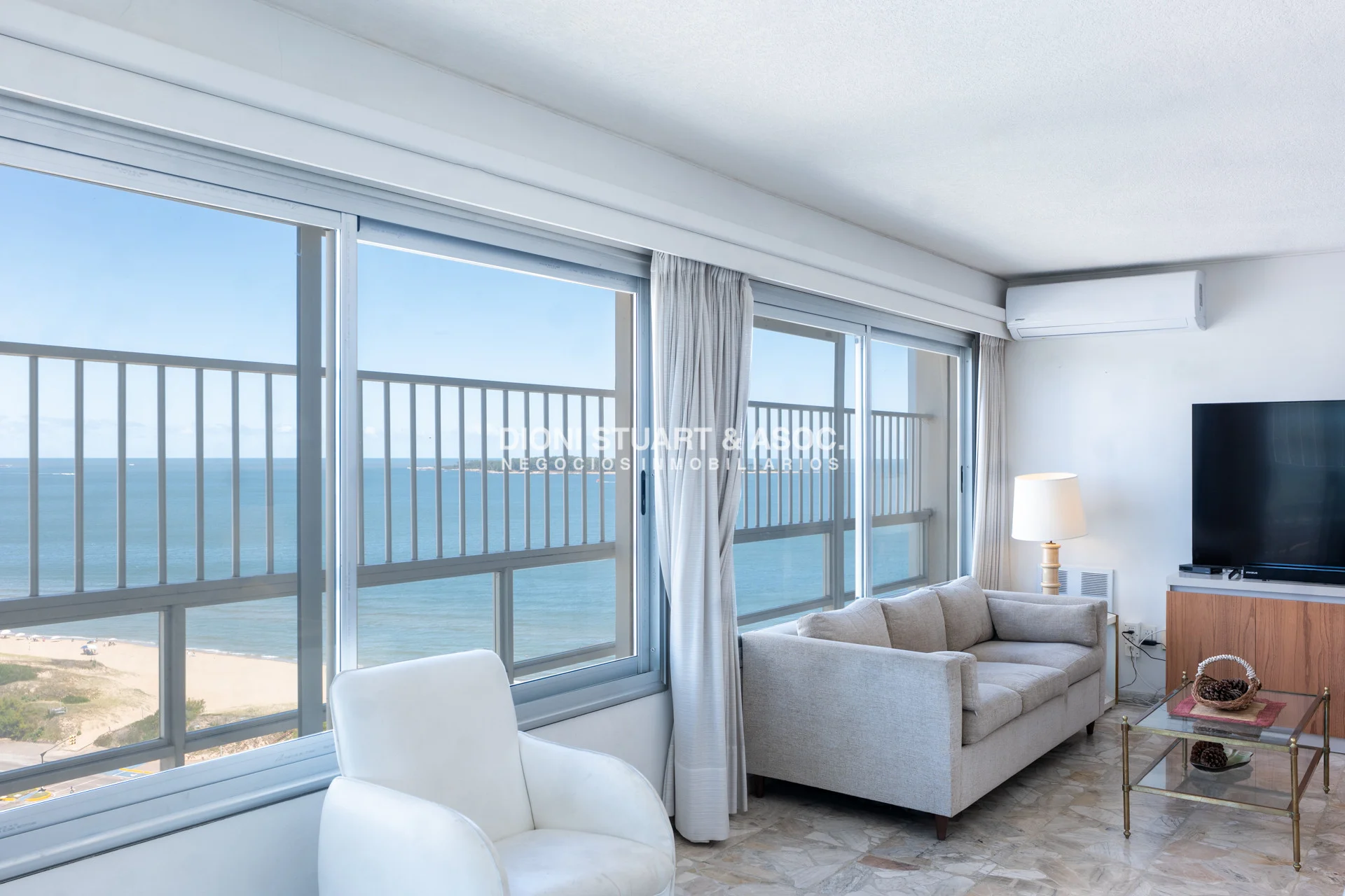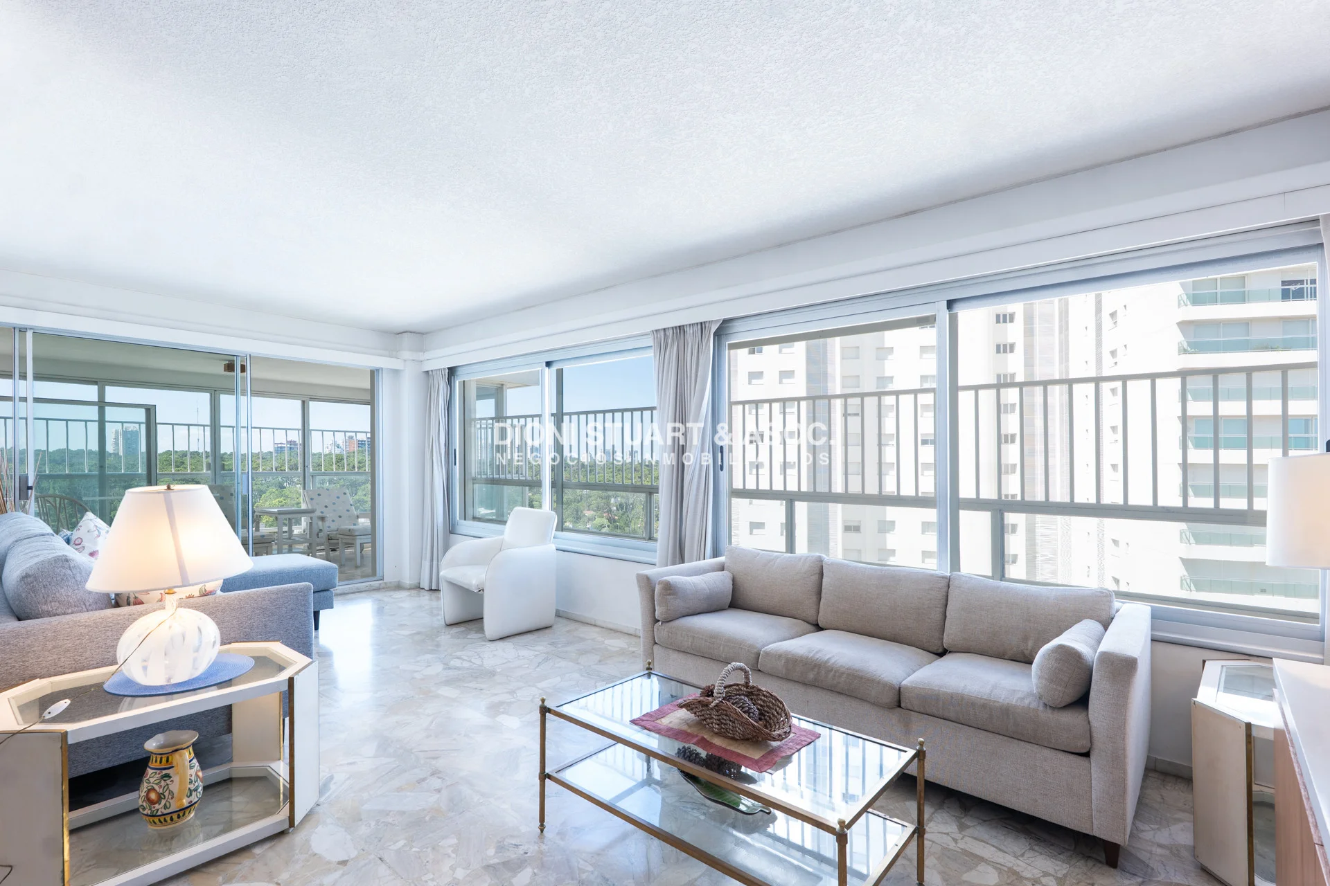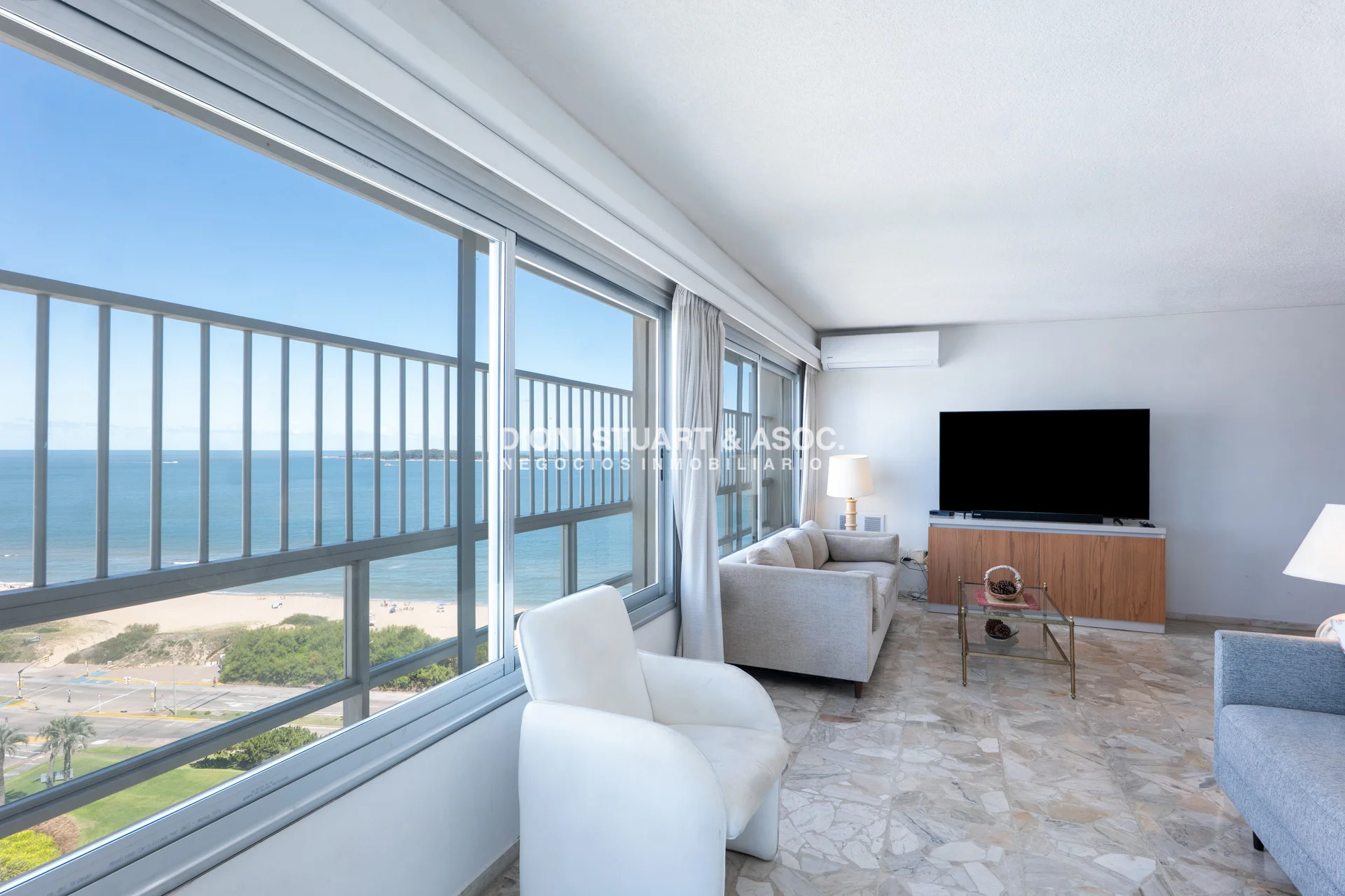 Apartamento de 120 m2 totales, con un amplio living-comedor en forma de L, cocina definida con lavadero, 2 dormitorios y medio y 2 baños (1 en suite).
