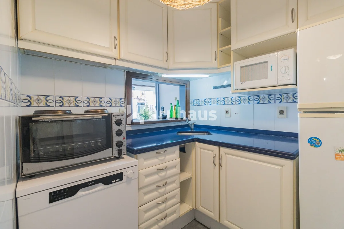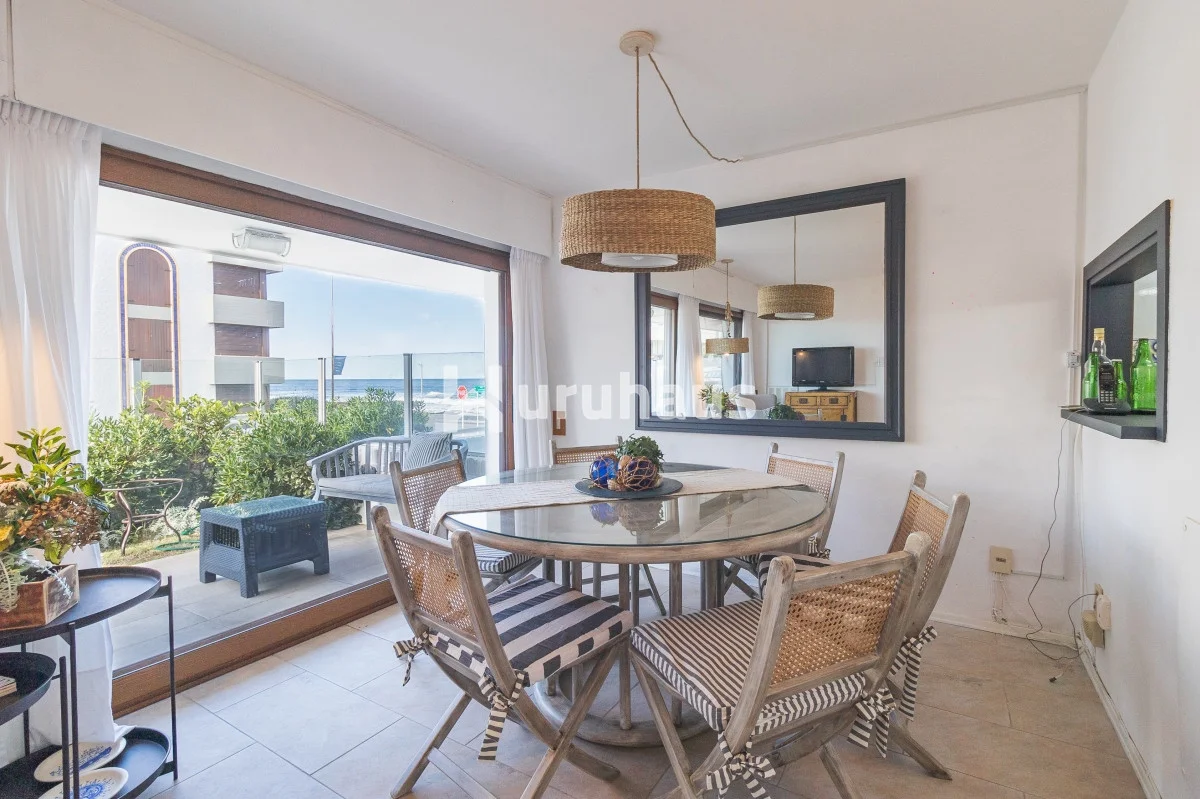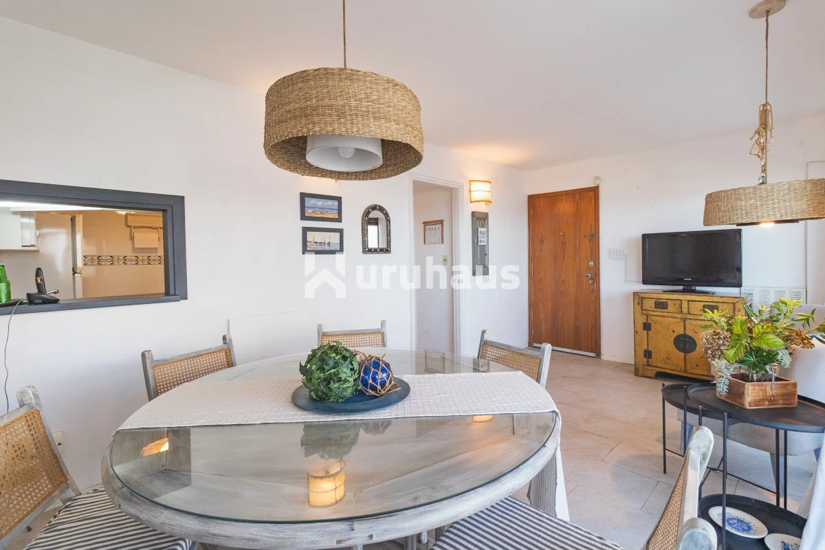 Apartamento de 93 metros cuadrados que se distribuyen en 2 dormitorios (uno de ellos en suite) y 2 baños; cocina completa con pasaplatos; living comedor y balcón terraza con vista al mar.
