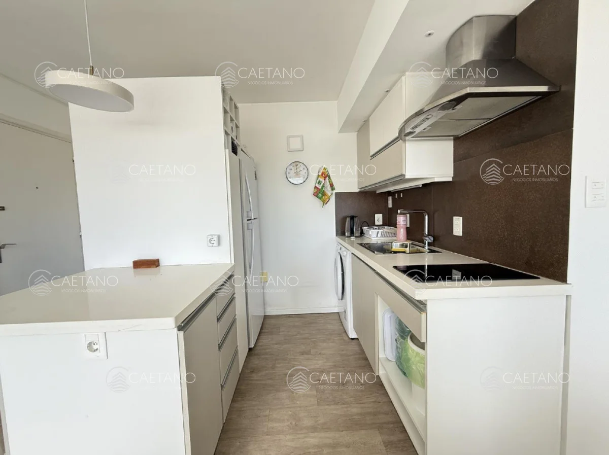 La unidad cuenta con 2 dormitorios, un cómodo living comedor con salida a una terraza desde la cual se aprecian vistas panorámicas a ambas playas. La cocina está integrada, lo que brinda mayor amplitud y conexión con el área social.