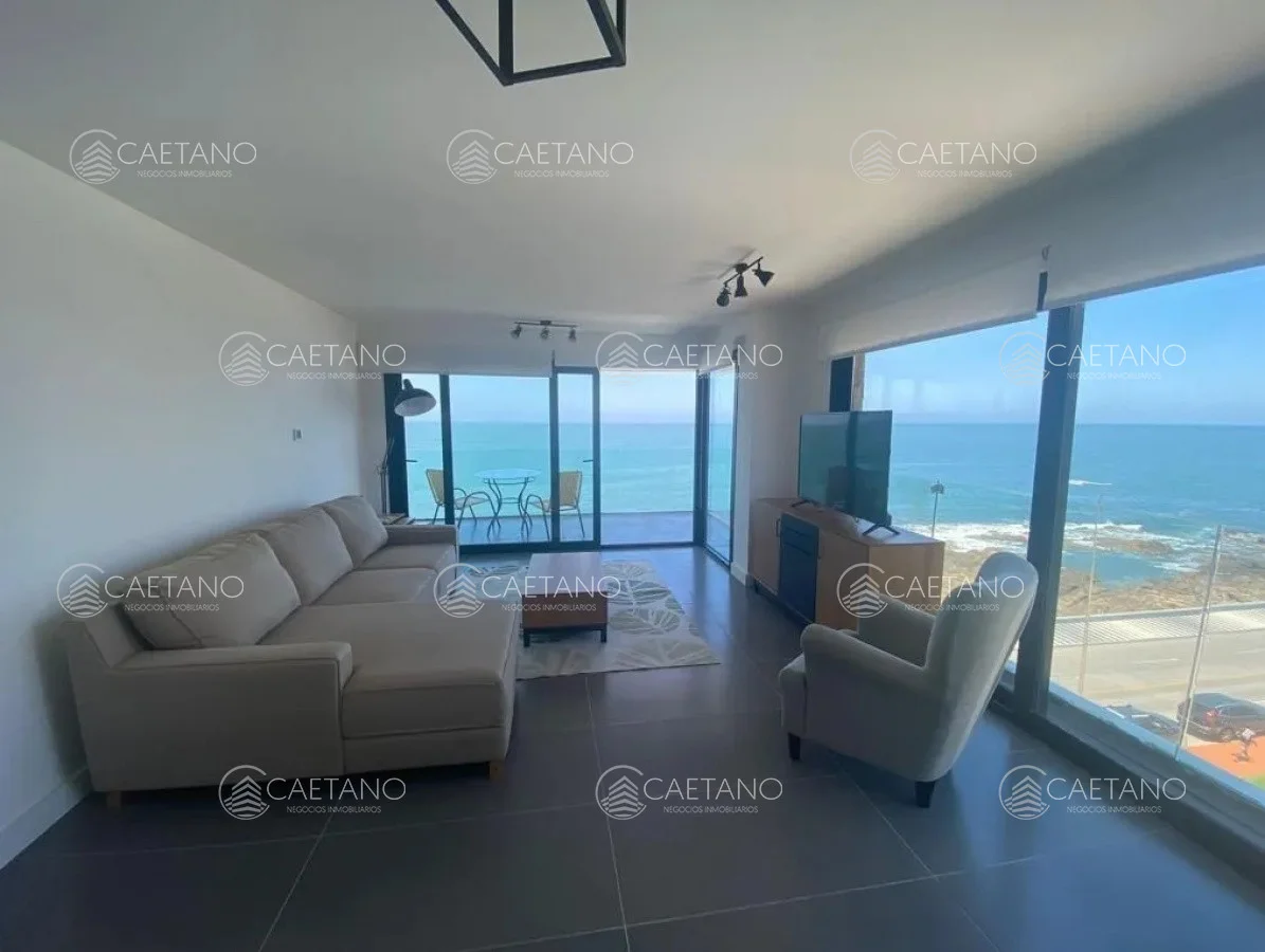 Frente al océano y con vistas espectaculares se encuentra esta unidad de 3 dormitorios, amplio living comedor, cocina semi-integrada, balcón y terraza lavadero.