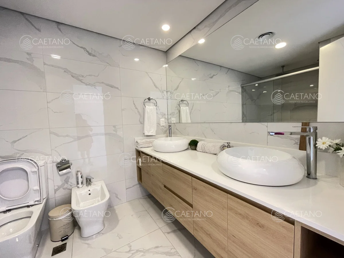 Unidad en piso intermedio ofrece Amplio living comedor con salida a balcón. tres dormitorios en suite, toilette, cocina definida, lavadero y garaje. ubicado en primera línea de Playa Mansa, vista directa al mar con balcón. Electrodomésticos, termotanques, cortinas, box de cochera, aires acondicionados, luminaria, domótica completa.